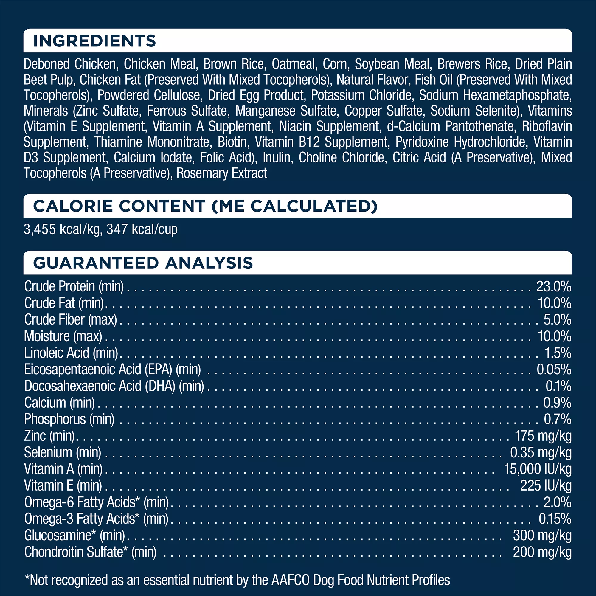 Ideal for senior care with nutrients to help support theenergy needs of mature dogs