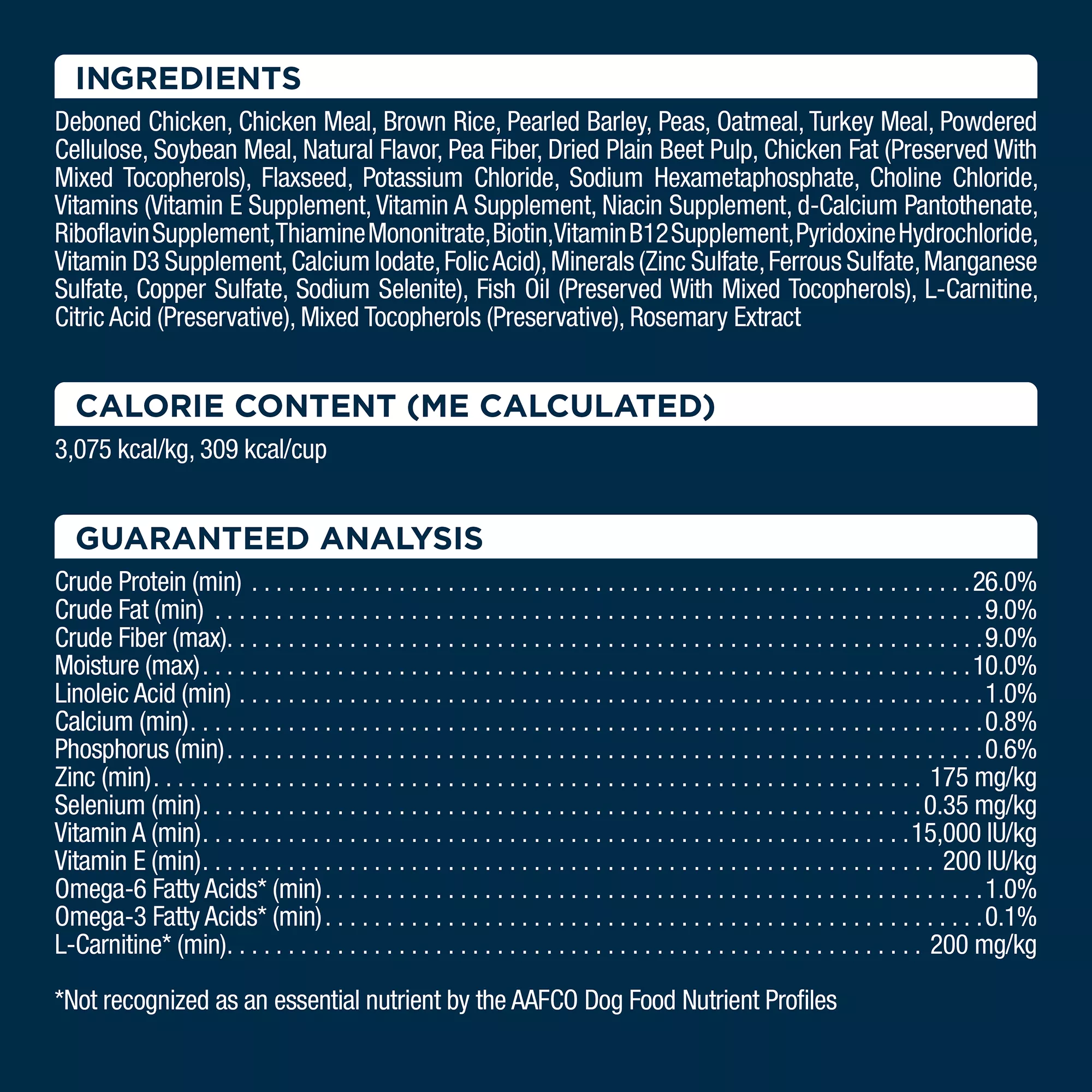 Authority? Healthy Weight Large Breed Chicken Formula Dry Dog Food is a tasty and nutritious choice designed to help your large breed dog maintain a healthy weight. Crafted specifically for their needs, this formula features the savory flavor of chicken in every bite. Our veterinarian-recommended products are backed by decades of research and expertise, delivering next-level nutrition to support your dog’s overall health and vitality. Because we believe proper nutrition is the foundation of a happy, active, and fulfilling life for your pet. Only at PetSmart.