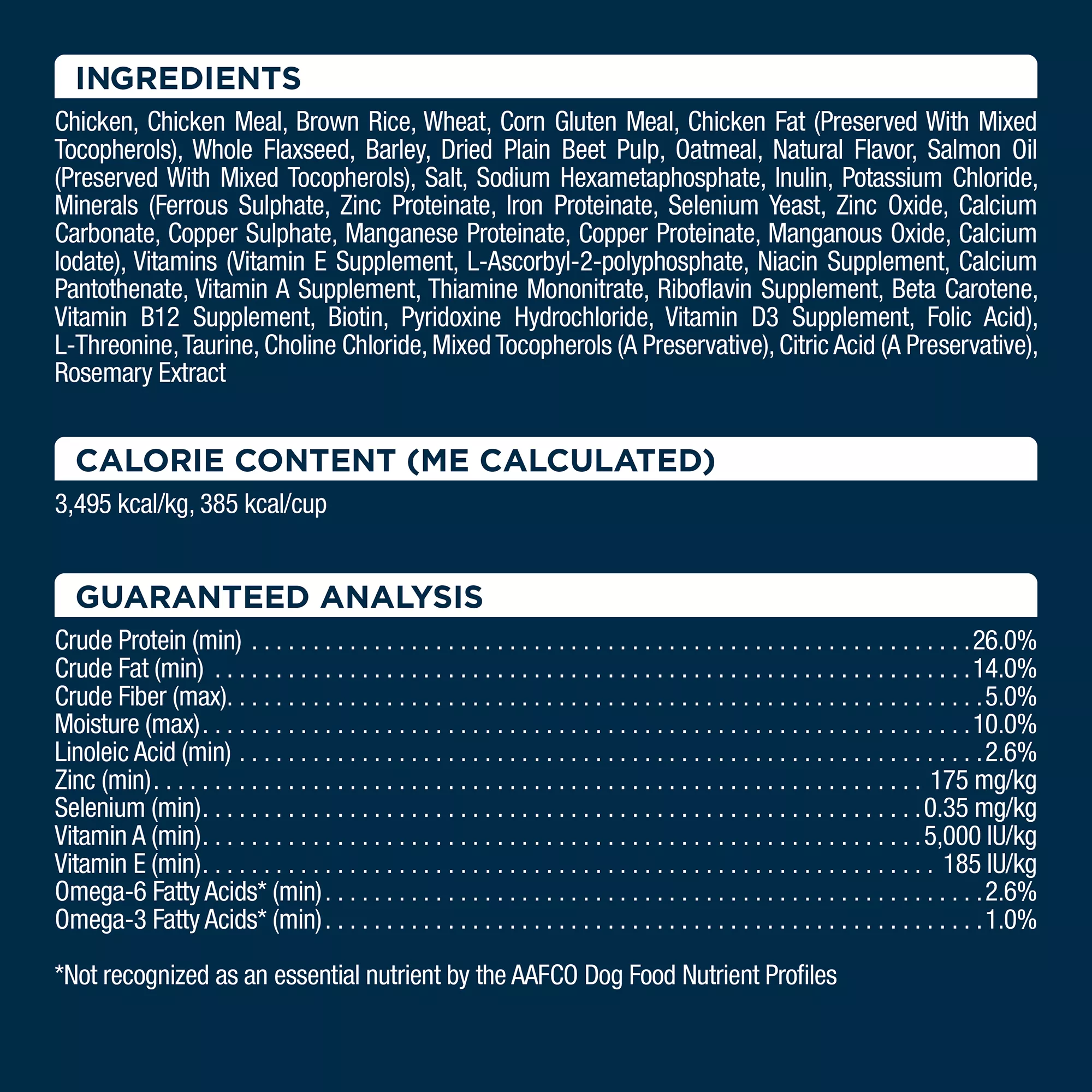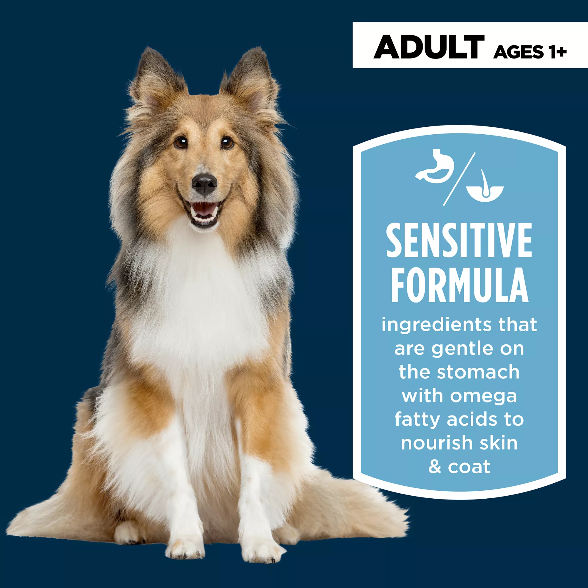 Sensitive formula made with ingredients that are gentle on the stomach and with omega fatty acids to nourish skin and coat