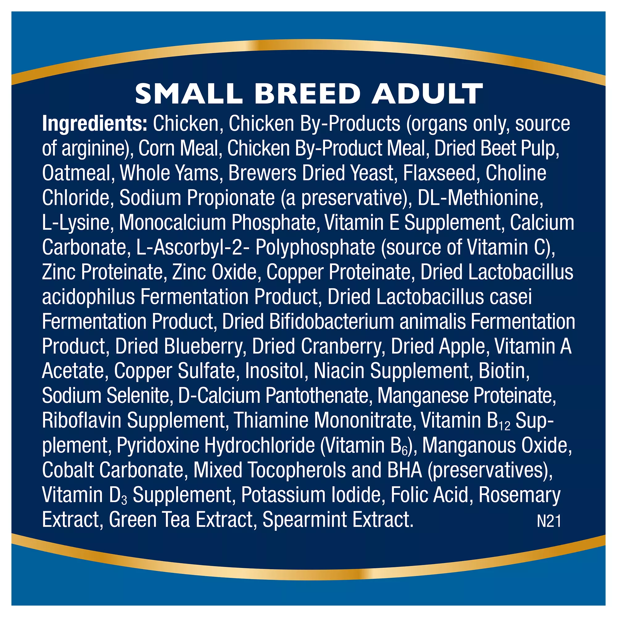 Specially formulated for small breeds with protein, fat, oatmeal and yams to help support their energy needs