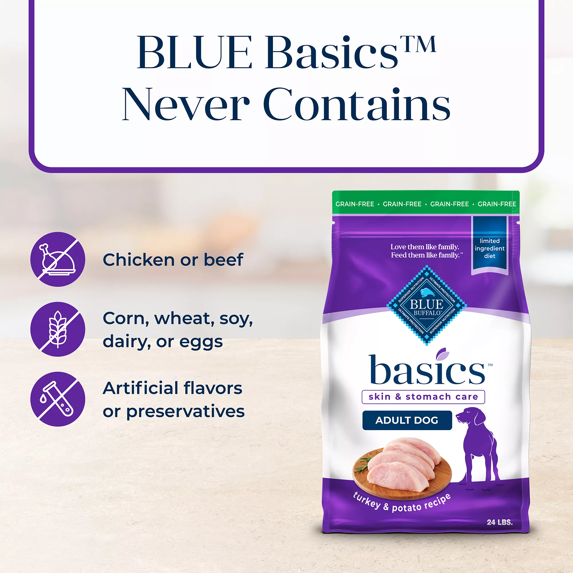 Blue Buffalo? Basics? Skin & Stomach Care Adult Dog Dry Food – Grain Free, Turkey & Potato