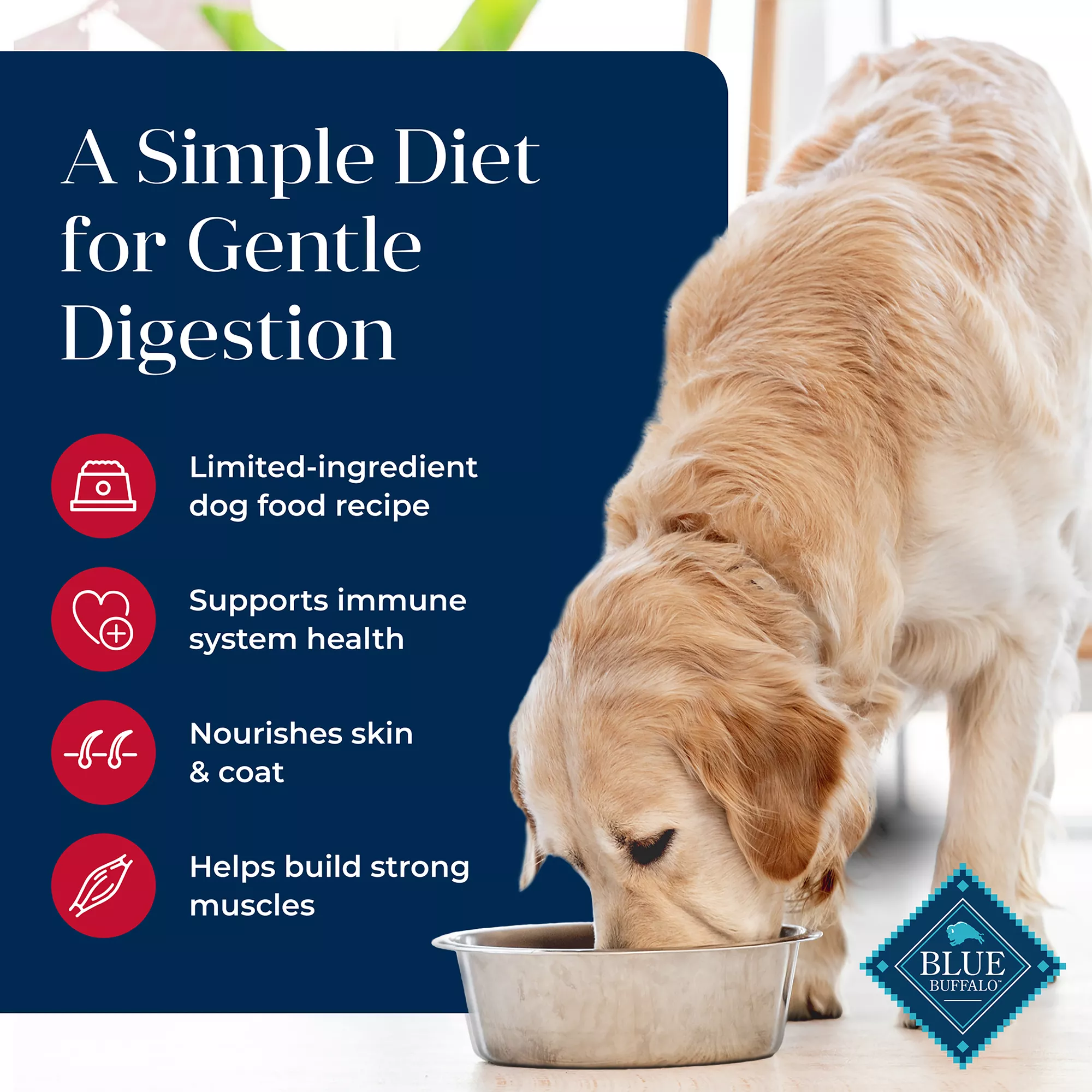 ADULT DOG FORMULA: This natural dog food with wholesome grains is formulated with healthy ingredients that support gentle digestion, plus Omega 3 & 6 fatty acids to nourish skin & coatHEALTHY, WHOLESOME INGREDIENTS: This Blue Buffalo dog food is made with no chicken (or poultry) by-product meals, and no corn, wheat, or soy