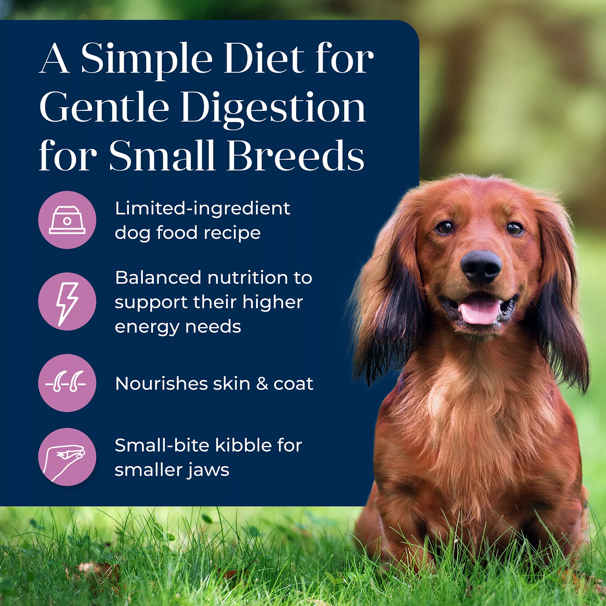 ADULT SMALL BREED FORMULA: This natural dog food for small breeds supports gentle digestion and is balanced to support higher energy needs