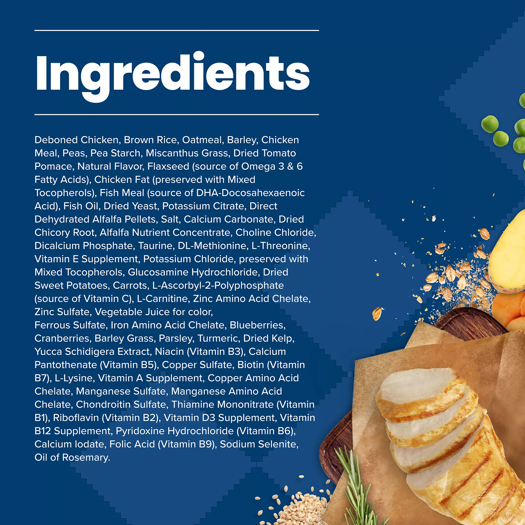 This delicious BLUE Life Protection Formula Large Breed Senior Dog Food is formulated with real chicken as the #1 ingredient. It’s sure to have your dog’s tail wagging as soon as you open it. Blue Buffalo senior dog food is made with fruits, vegetables, and essential nutrients to help them stay active in their golden years. Like all Blue Buffalo dog food recipes, this dry dog food for large breeds is formulated without any chicken (or poultry) by-product meals. This natural dry dog food is also free of corn, wheat, soy, artificial flavors, and preservatives.
