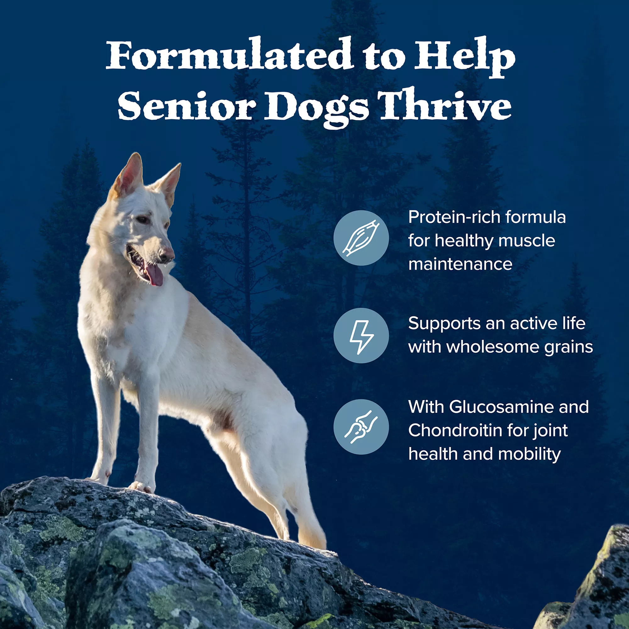 SUPPORTS SENIOR DOG HEALTH: Blue Buffalo Wilderness Recipe dry dog food is packed with whole grains, vitamins, and minerals and is ideal for providing your senior dog with energy and nutrition