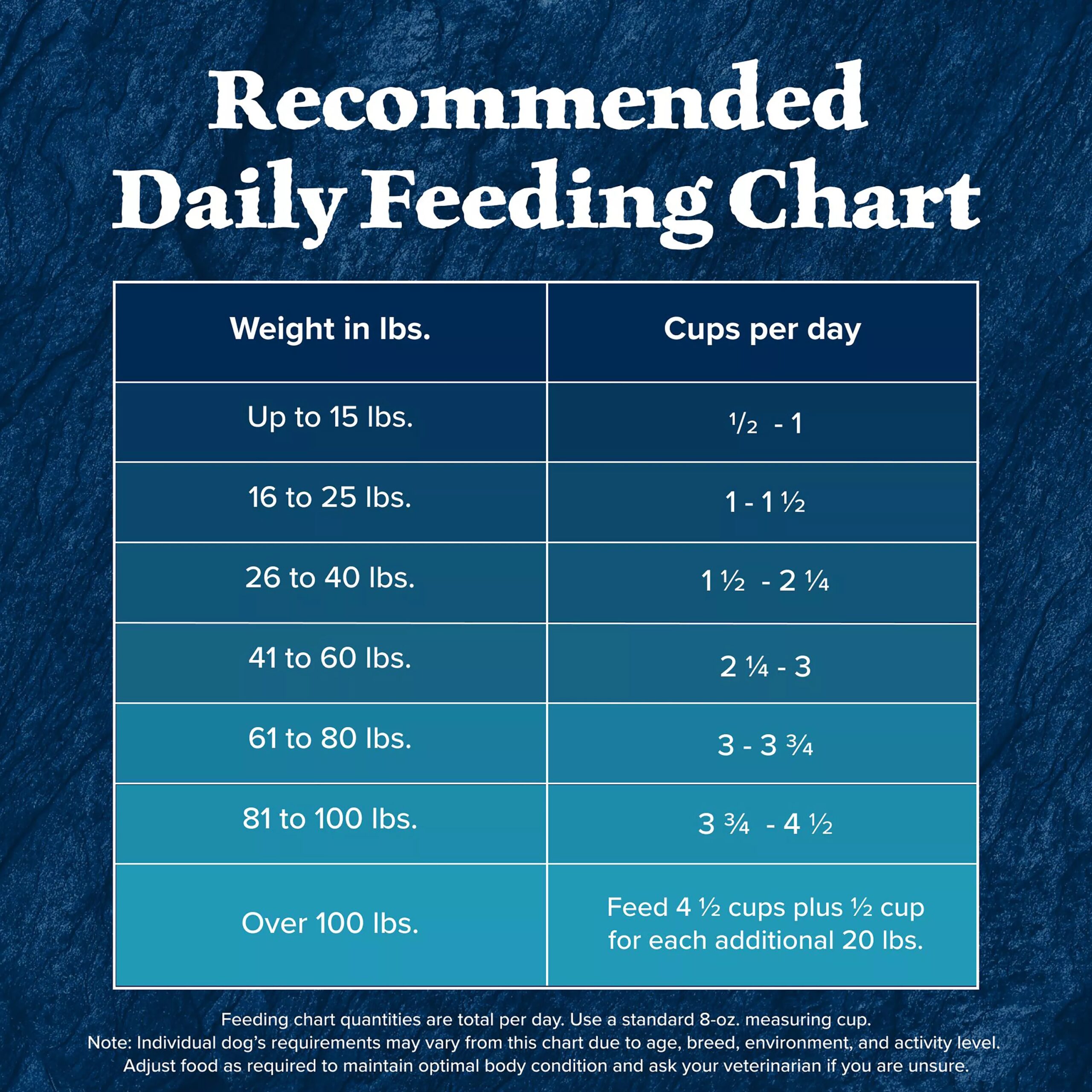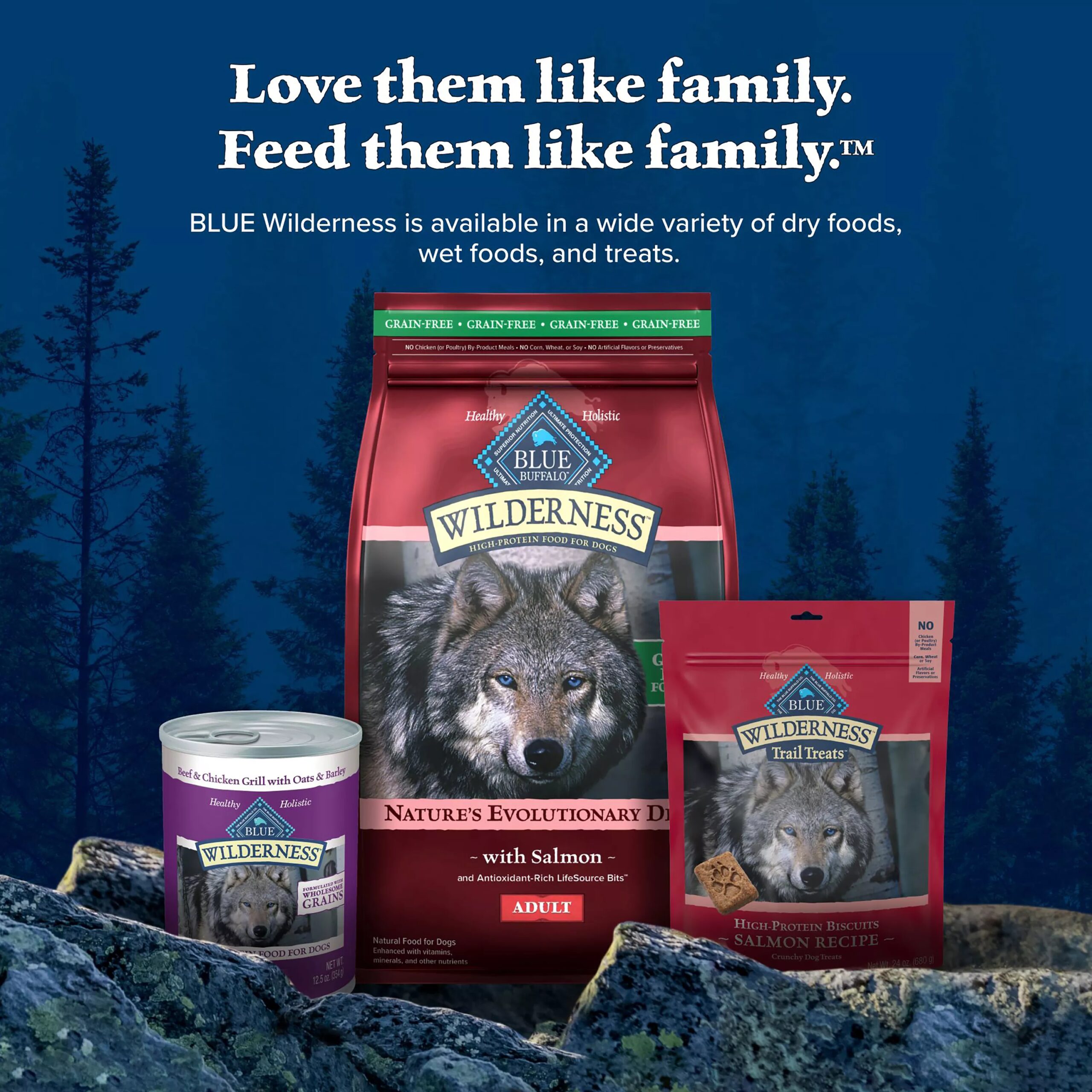 Like their ancestors before them, dogs were born to love meat. That’s why high-protein BLUE Wilderness dog food is packed with the meat dogs crave. With delicious real salmon as the first ingredient, Blue Buffalo Wilderness Natural Grain-Free Dry Food for Adult Dogs, Salmon Recipe provides natural, balanced nutrition to help your dog thrive while satisfying their wild side. This protein-rich, grain-free formula contains fats, complex carbohydrates, fruits, and vegetables for wholesome, well-rounded nutrition without the grains some Pet Parents choose to avoid. High-quality protein from salmon helps your dog maintain strong, healthy, lean muscles. BLUE Wilderness dog foods are backed by the True BLUE Promise and always start with real, high-quality meat, poultry, or fish. They contain no chicken or poultry by-product meals, no corn, wheat, or soy, and no artificial flavors or preservatives. BLUE Wilderness is brought to you by Blue Buffalo, the leader in natural pet food. Love them like family. Feed them like family.