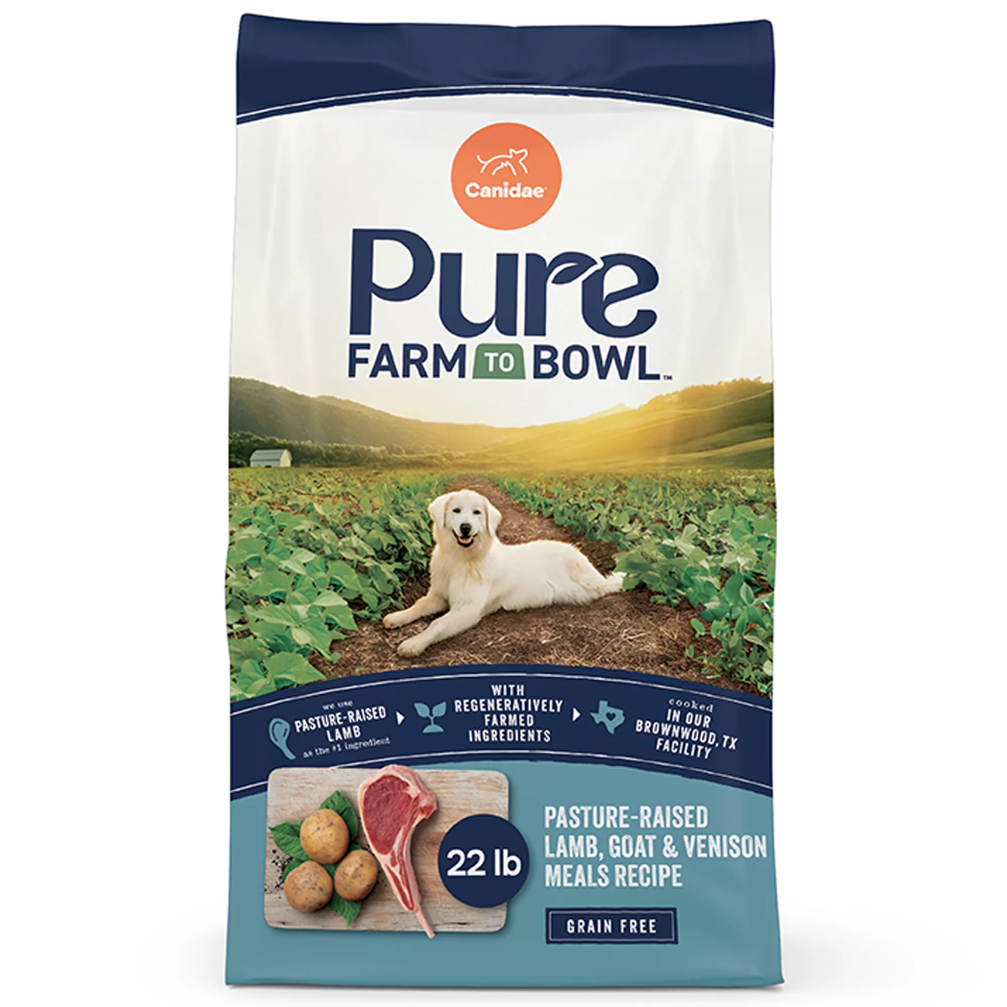 Canidae Pure Farm To Bowl Dog Food – Pasture-Raised Lamb and Goat & Venison Meals Recipe, 22 lbs