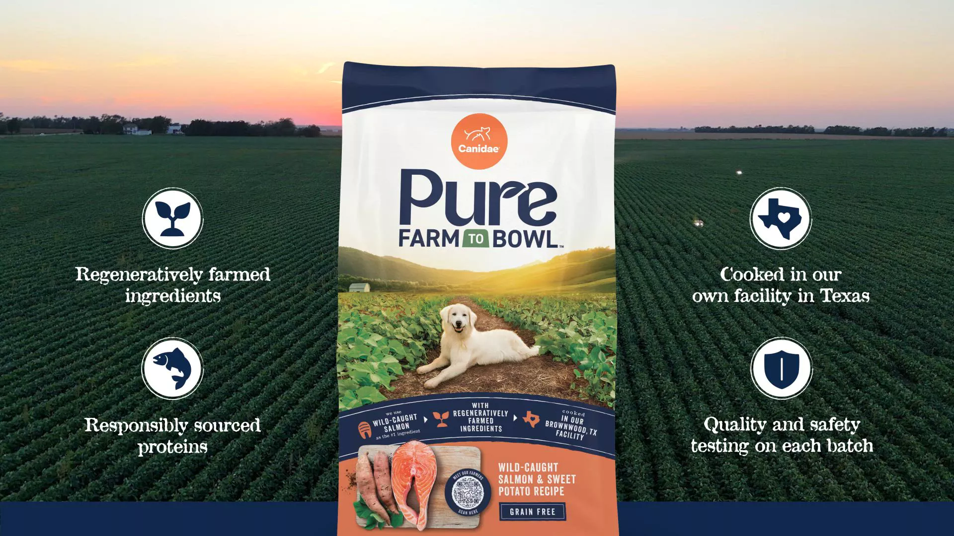 Description: Canidae Pure Farm To Bowl was born from our belief that quality pet food starts long before it reaches the bowl. It starts in the soil, with farmers we trust and through the choices we make. That’s why we use responsibly sourced proteins like wild caught salmon and regeneratively farmed ingredients that help restore soil and promote biodiversity. These nutrient-rich ingredients nourish your dog’s health and well-being….