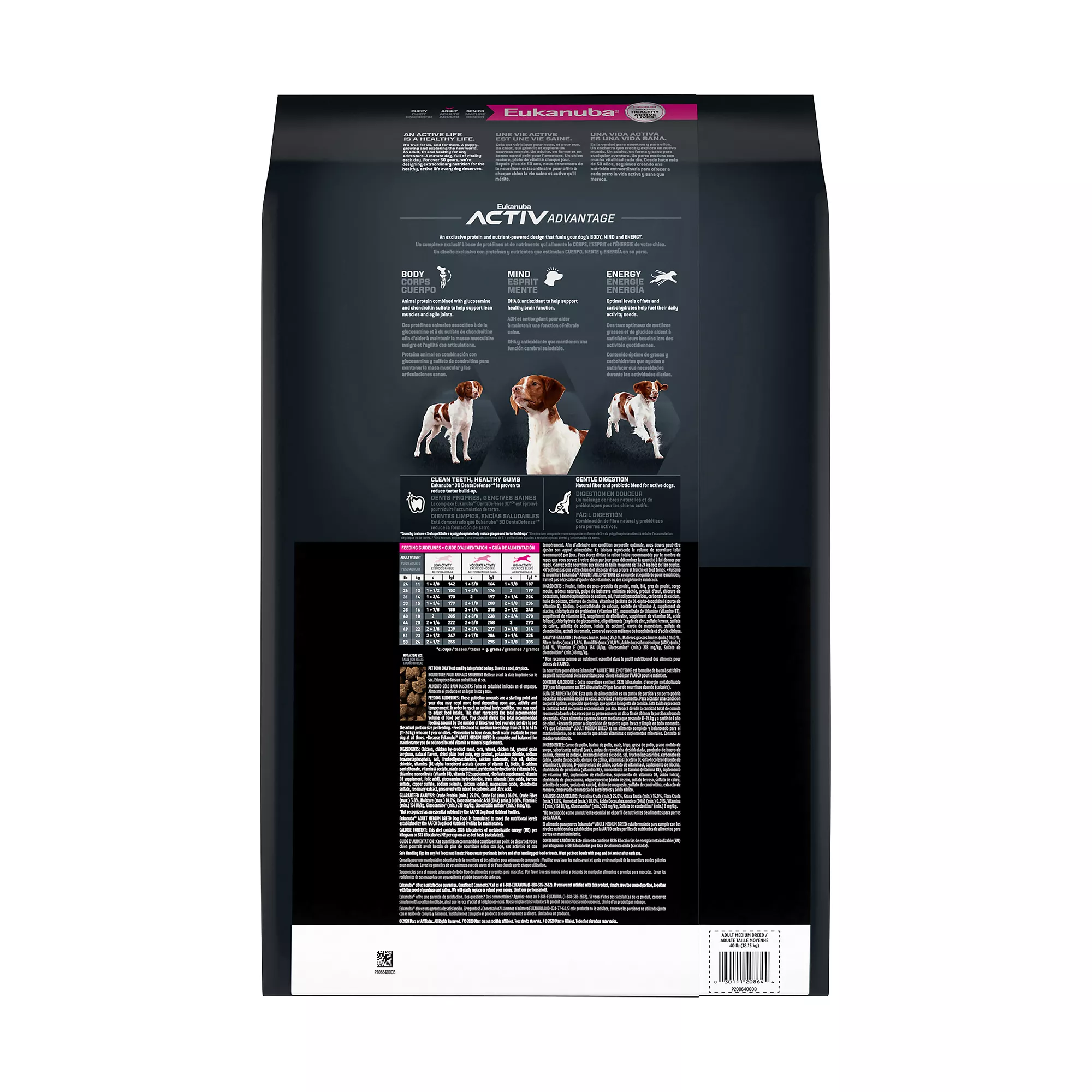 Description: Your medium breed dog is anything but ordinary, and they can benefit from extraordinary nutrition to help them perform their best. Fuel your companion’s body, mind and energy with Eukanuba Adult Dry Dog Food for Medium Dogs. Animal protein, glucosamine, and chondroitin sulfate support lean muscles and agile joints. DHA and vitamin E help support healthy brain function. Optimal levels of fats and carbohydrates help fuel an active lifestyle. The crunchy texture, S?shaped kibble, and a polyphosphate in the 3D DentaDefense support dog dental care by reducing tartar buildup for clean teeth and healthy gums. A blend of prebiotics and natural fiber for dogs aids gentle digestion to help keep your medium breed dog healthy. Plus, high?quality chicken is the first ingredient in this adult dry dog food to power your dog’s day. Mix this healthy dog food kibble with your dog’s favorite wet food for the perfect complement. Your dog helps make your life extraordinary. Return the favor by feeding them Eukanuba and fuel the extraordinary in every day.