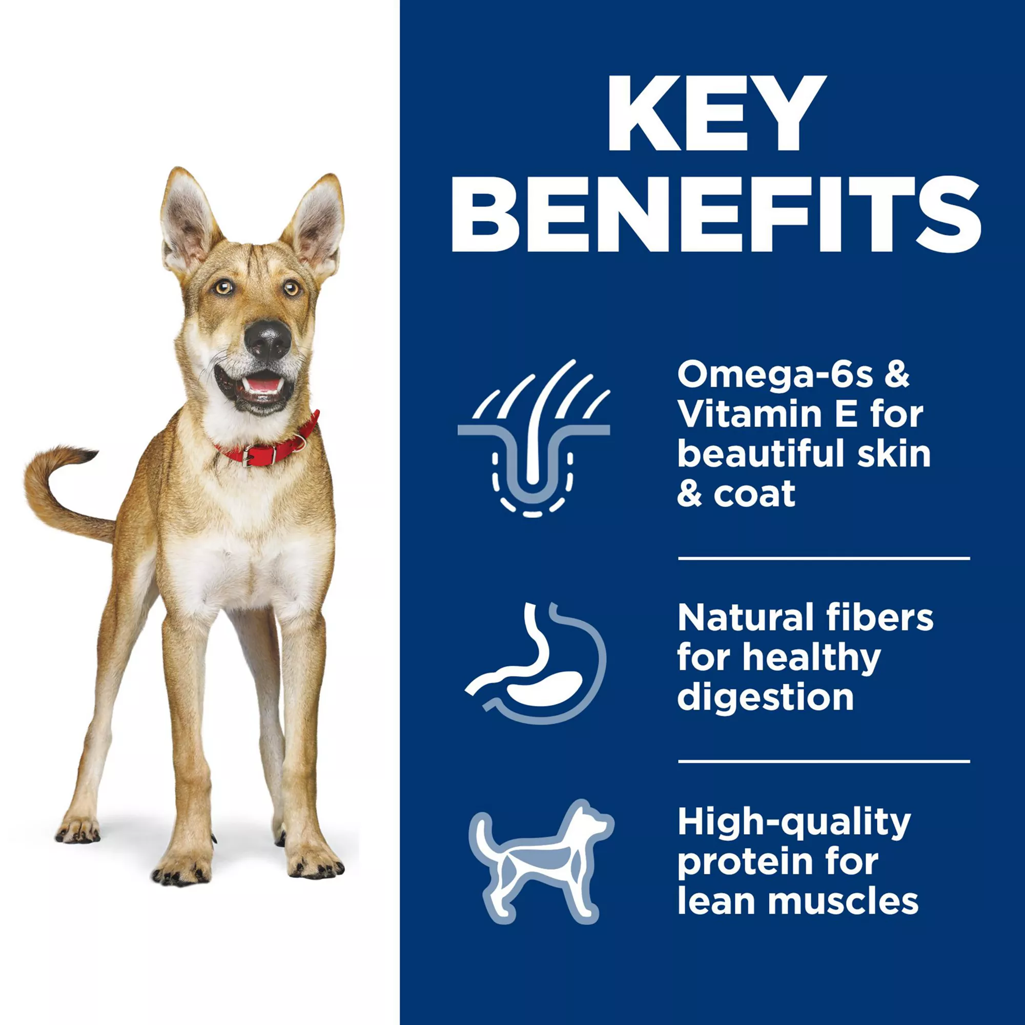Supports lean muscle growth and maintenance in your adult dog with a premium source of high quality protein.