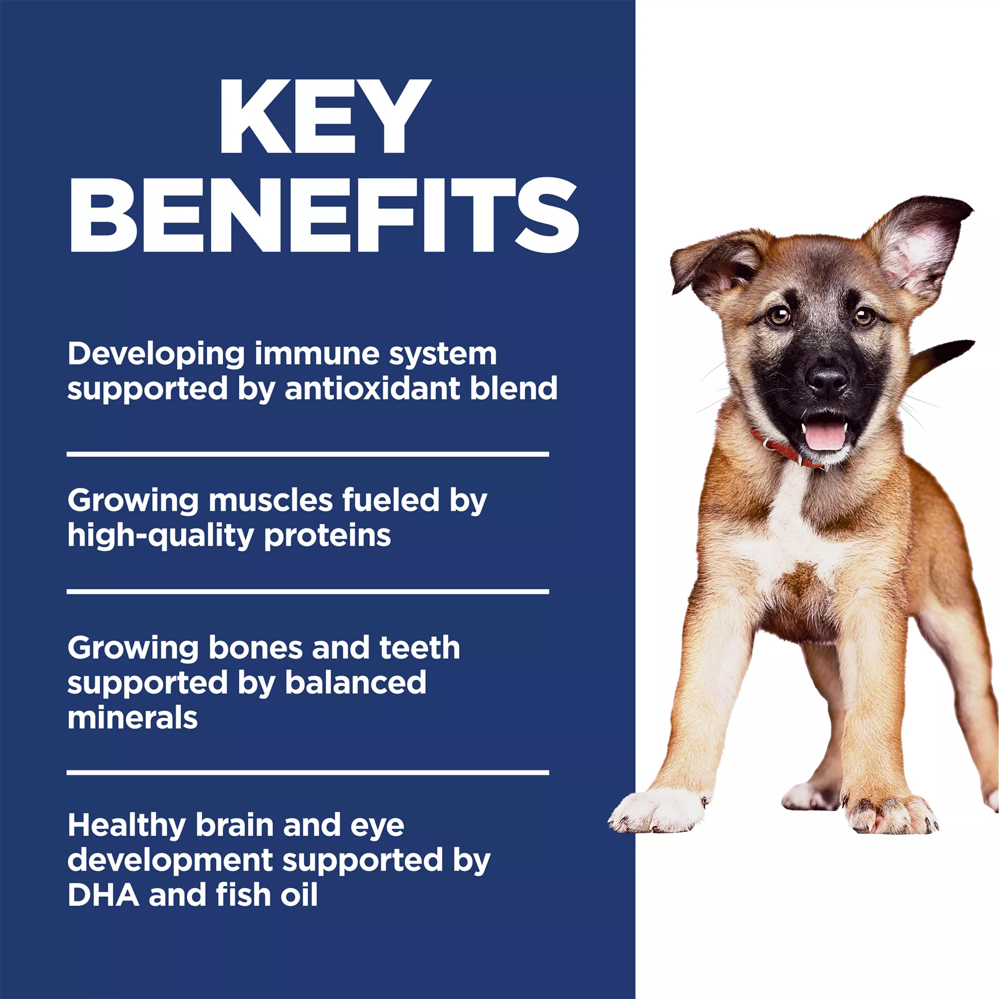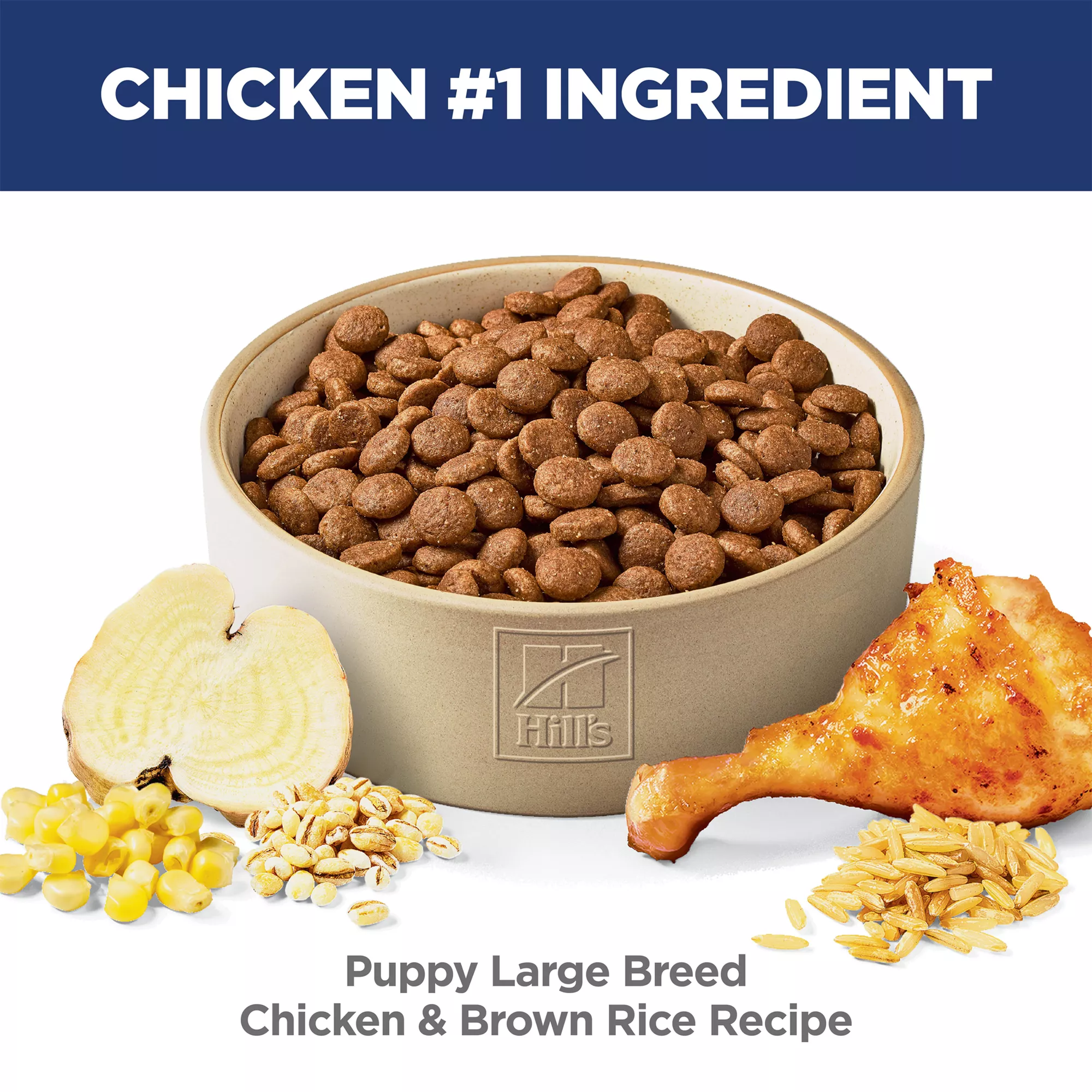 Nutritional Benefits: Hill’s Science Diet Puppy Large Breed Chicken & Brown Rice Recipe dry food is specially made with an optimal level of calcium for controlled bone growth, a unique developmental need of large breed puppies. Give them the best start in life so they can grow to their full potential.
