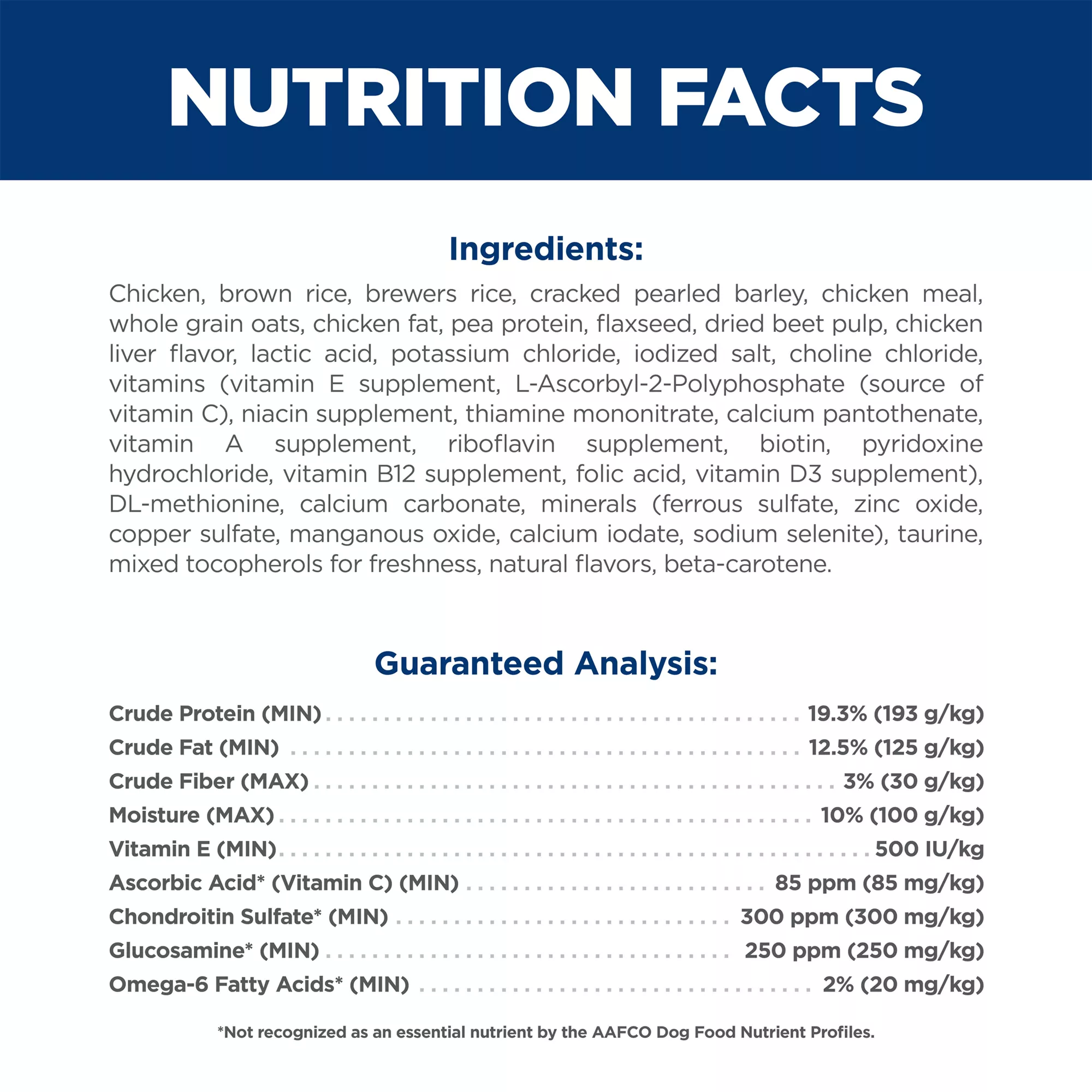 Description: Big dogs have their own set of nutrition needs, so Hill’s Science Diet Adult Large Breed No Corn, Wheat, Soy Chicken & Brown Rice Recipe dog food is specially formulated to fuel the energy needs of large breed dogs during the prime of their life. Made with high?quality, easy?to digest?ingredients, this food made for fully grown large dogs supports the building of lean muscle with high?quality protein, as well as glucosamine and chondroitin for healthy joints & mobility. A balanced blend of omega?6s and vitamin E nourishes skin for a healthy, shiny coat.