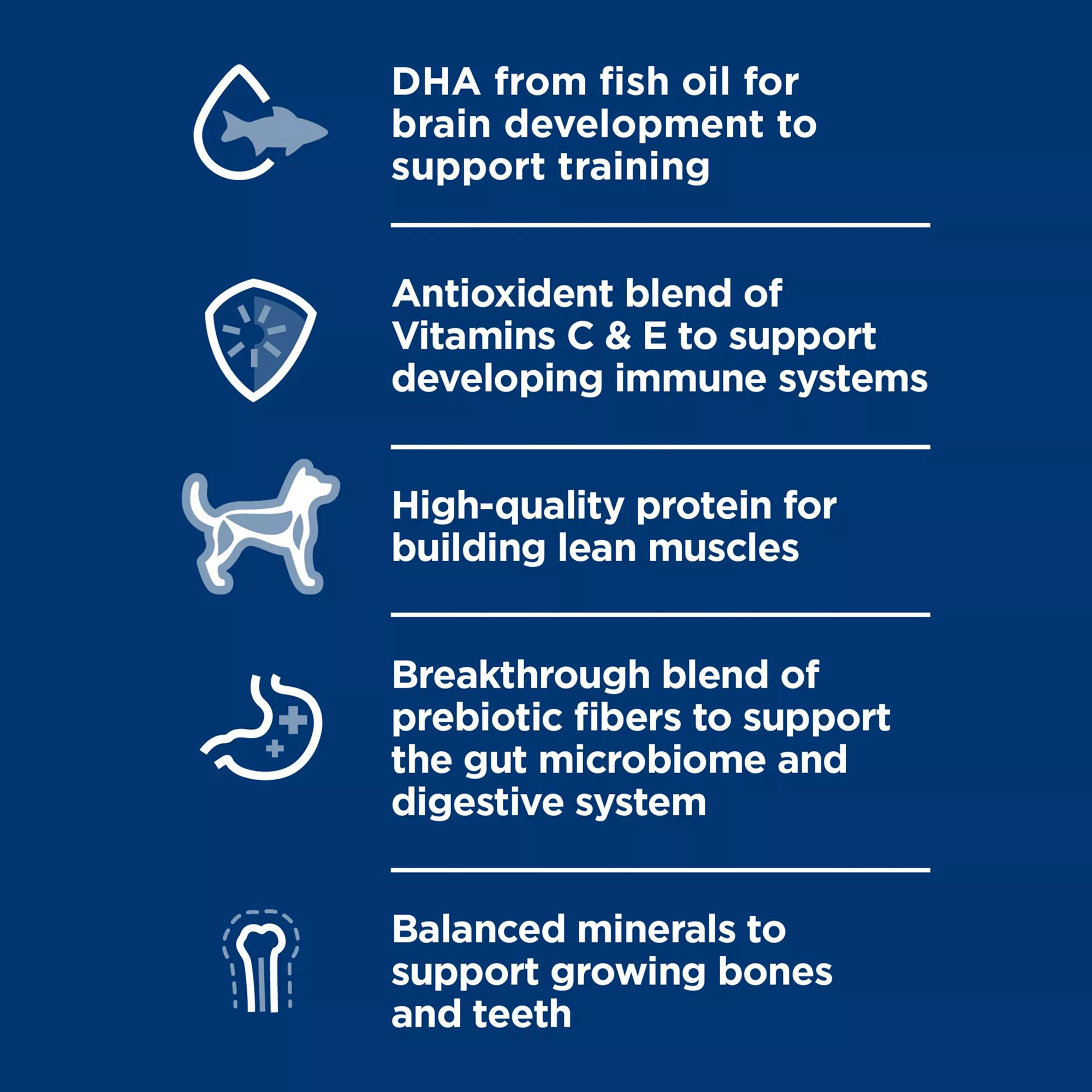 Description: Hill’s Science Diet Puppy Lamb Meal & Brown Rice Recipe dry dog food is rich in flavor & carefully formulated with vital nutrients to support 5 essential building blocks for lifelong health, so they get the best start in life & grow to their full potential. Now there is even more to love with a breakthrough blend of prebiotic fibers, ActivBiome+ Digestion, to support the gut microbiome and digestive system.