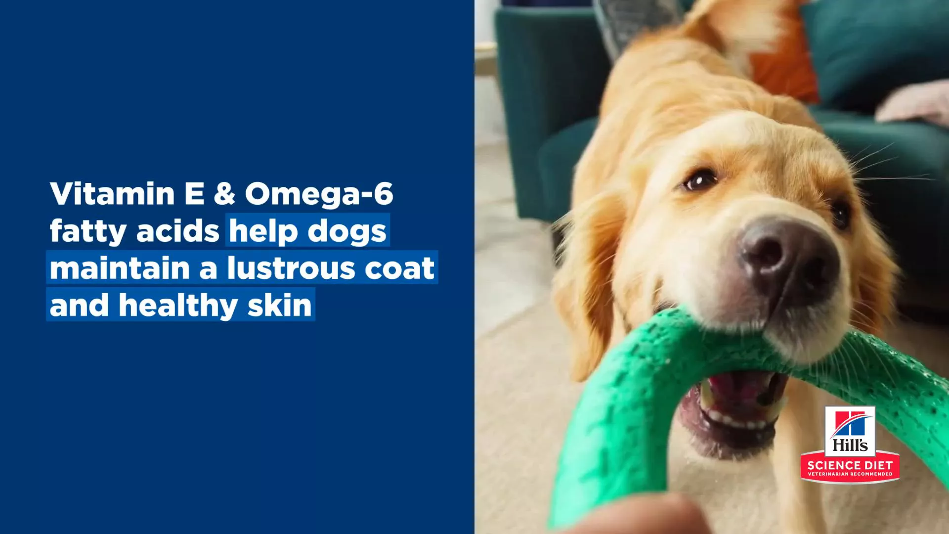 Enriched with Vitamin E and Omega-3 & 6 fatty acids, for healthy skin and a lustrous coat