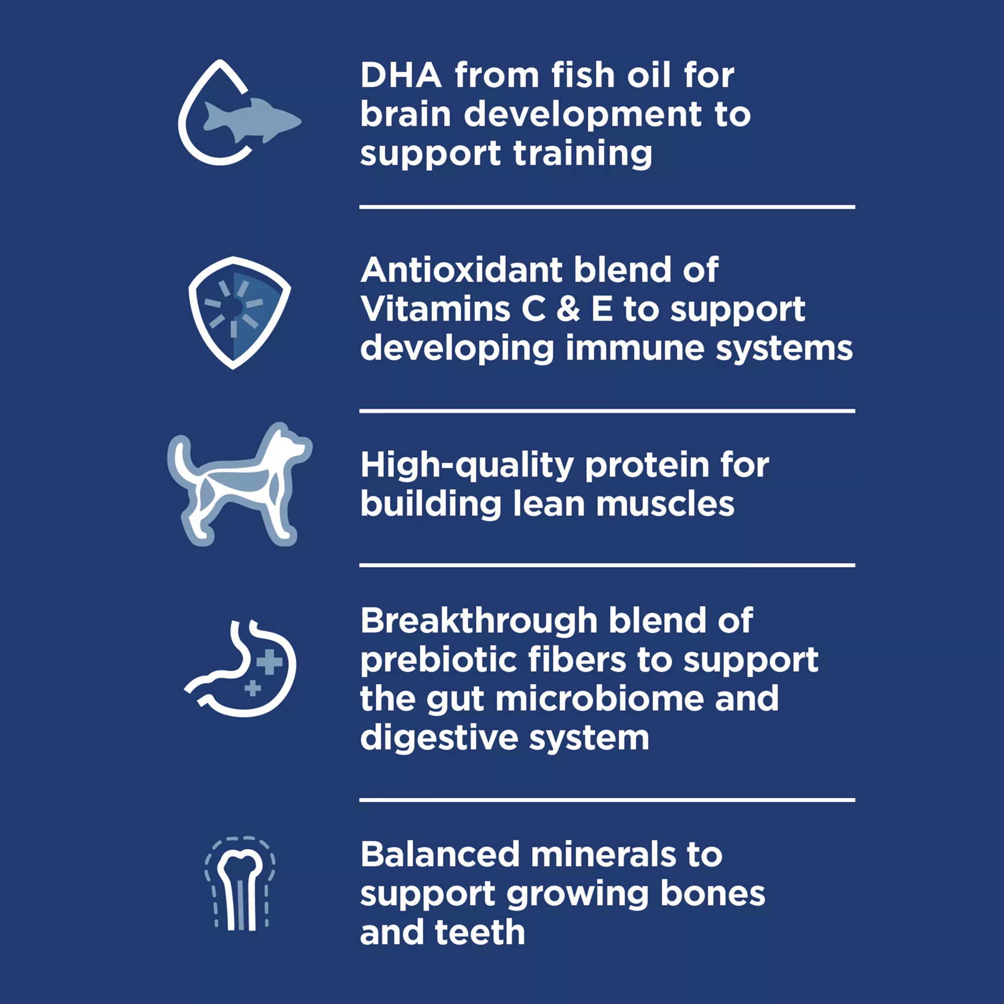 Description: Hill’s Science Diet Puppy Small Bites Chicken & Brown Rice Recipe dry food is rich in flavor & carefully formulated with vital nutrients to support 5 essential building blocks for lifelong health, so they get the best start in life & grow to their full potential. Delicious flavor in a small bite size for those that prefer variety. Plus, now there is even more to love with a breakthrough blend of prebiotic fibers, ActivBiome+ Digestion, to support the gut microbiome and digestive system.