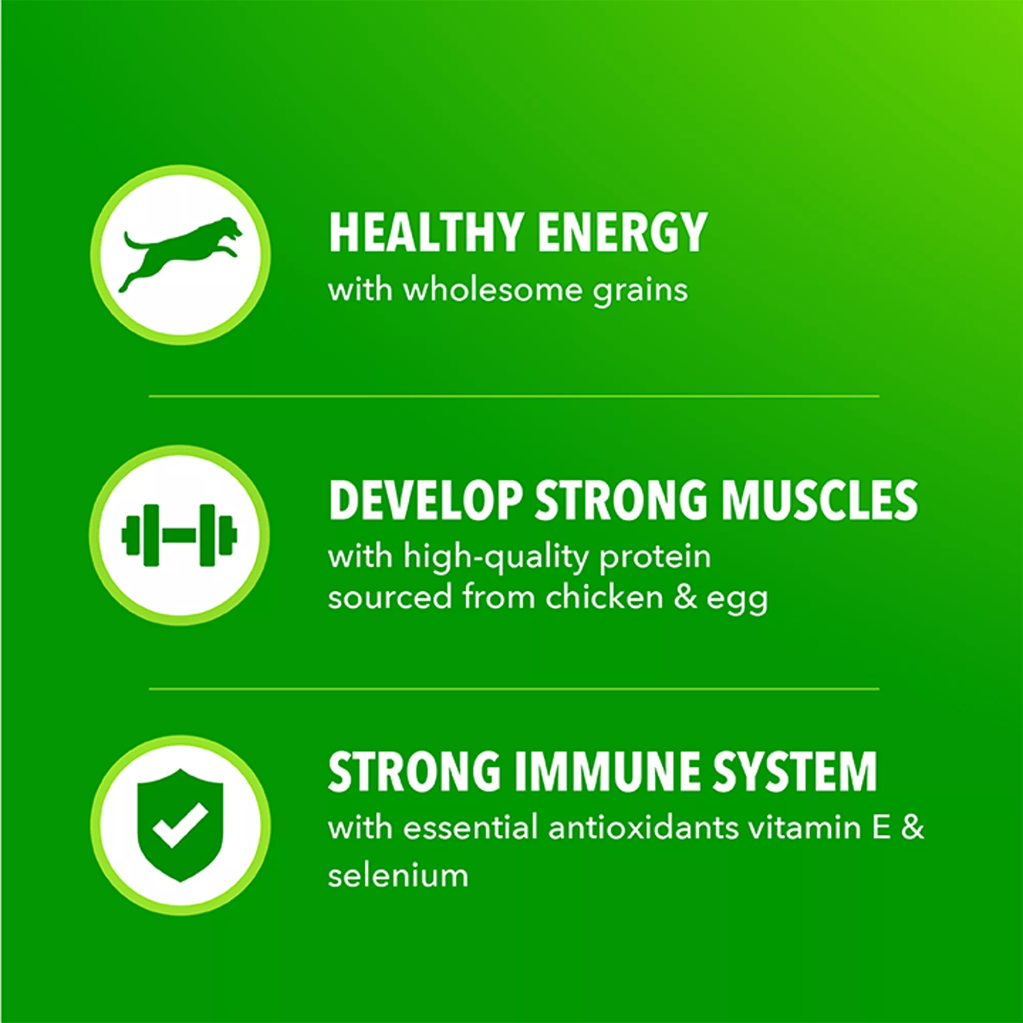 Supports Strong Muscles: This healthy dog food supports strong muscles with high-quality protein sourced from chicken and egg.