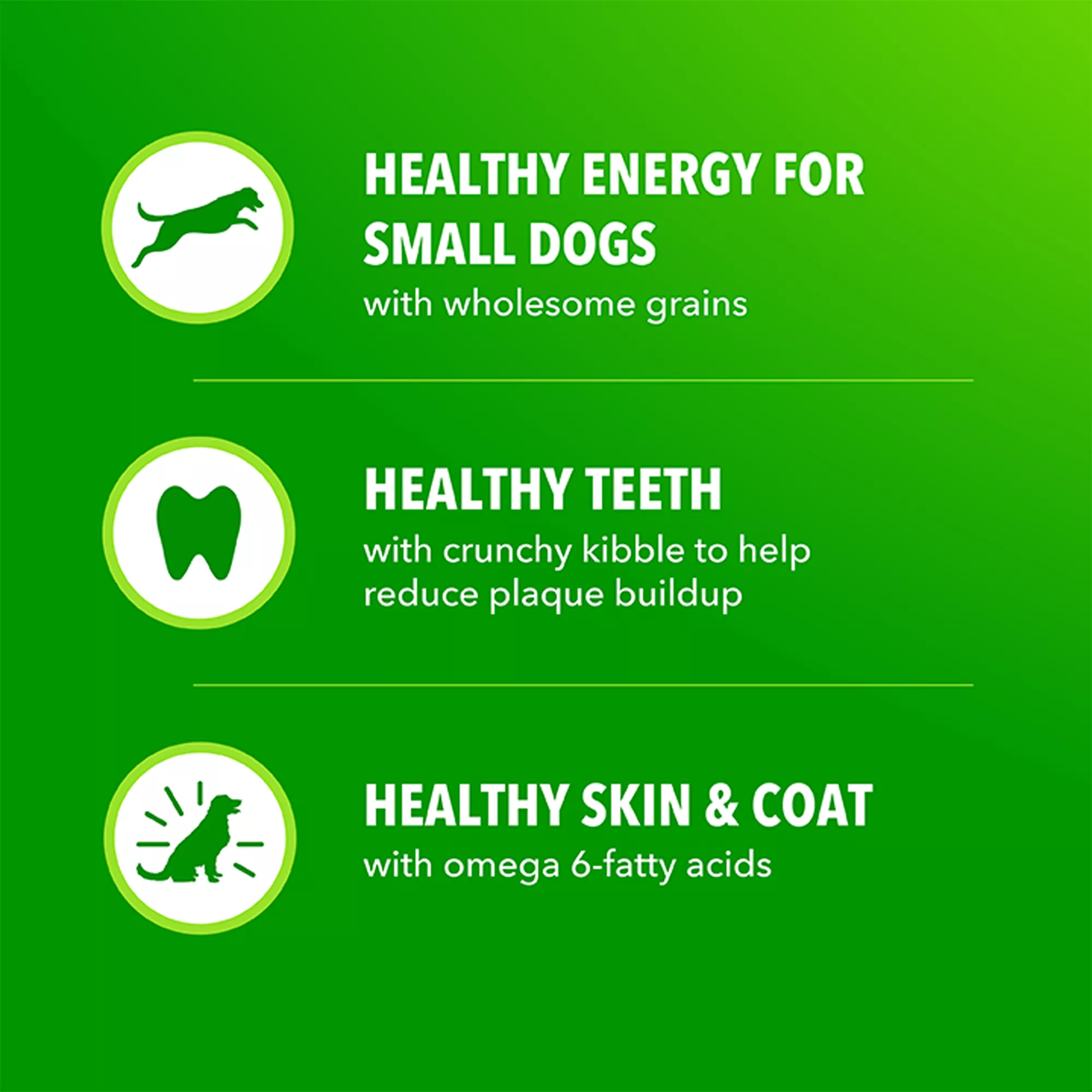 Healthy Teeth: IAMS Dry Dog Food for small dogs includes crunchy kibbles that scrub your dog’s teeth with every bite, helping to reduce plaque buildup that can lead to bad breath.