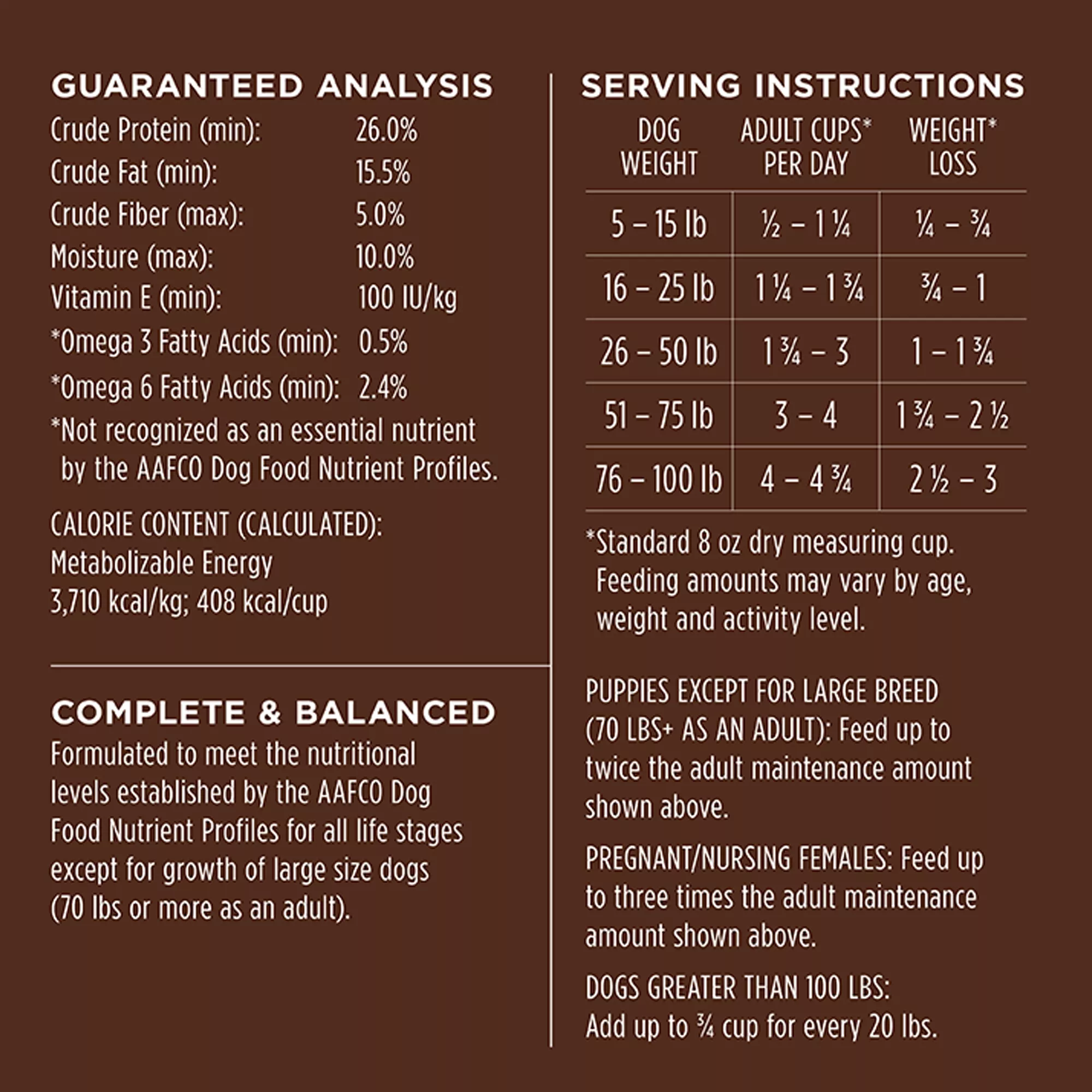 No fillers – made without corn, wheat, soy, chicken or poultry by-product meal, brewer’s rice, artificial colors or preservatives