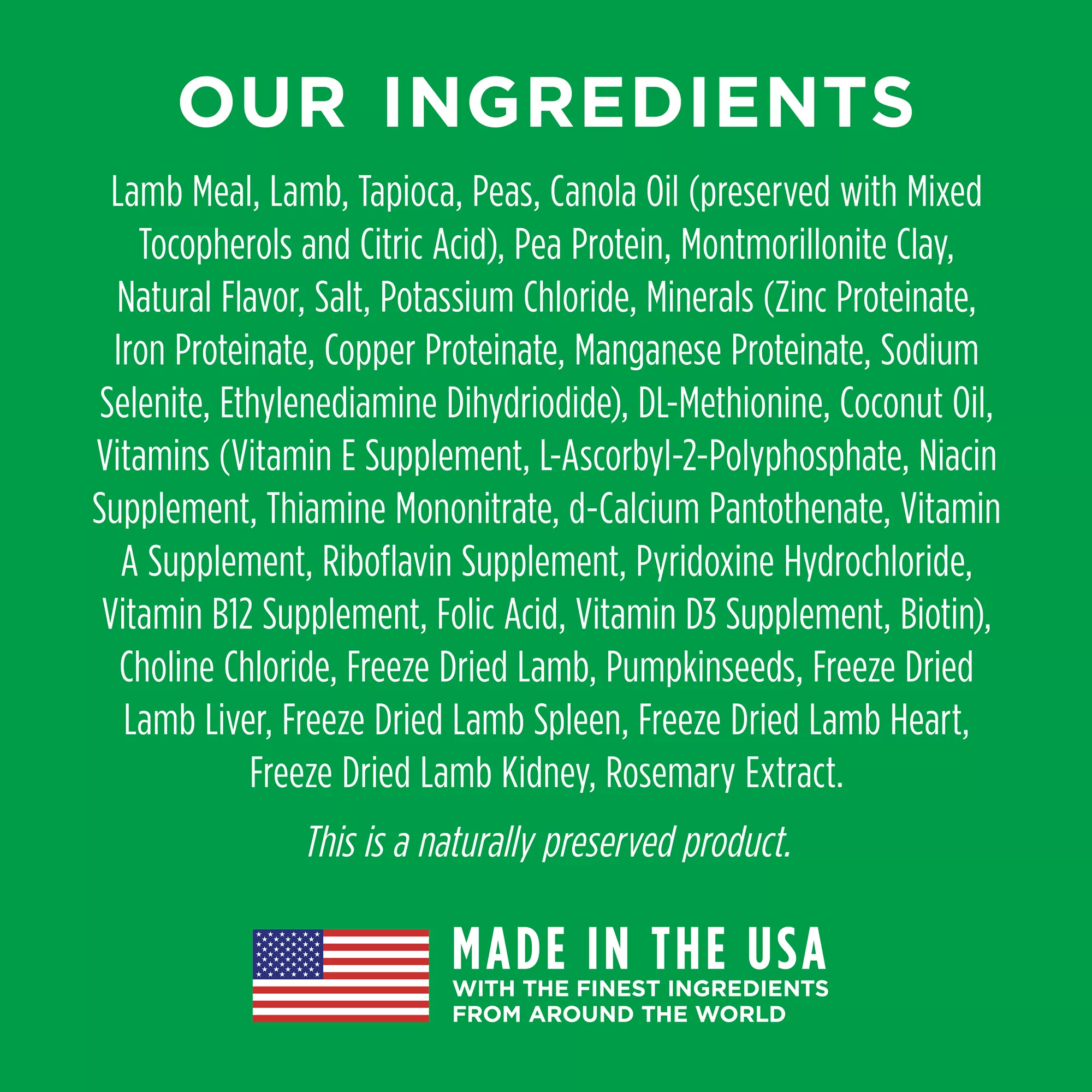 Made with grass-fed lamb – a nutrient rich, easily digestible protein that provides all the essential amino acids