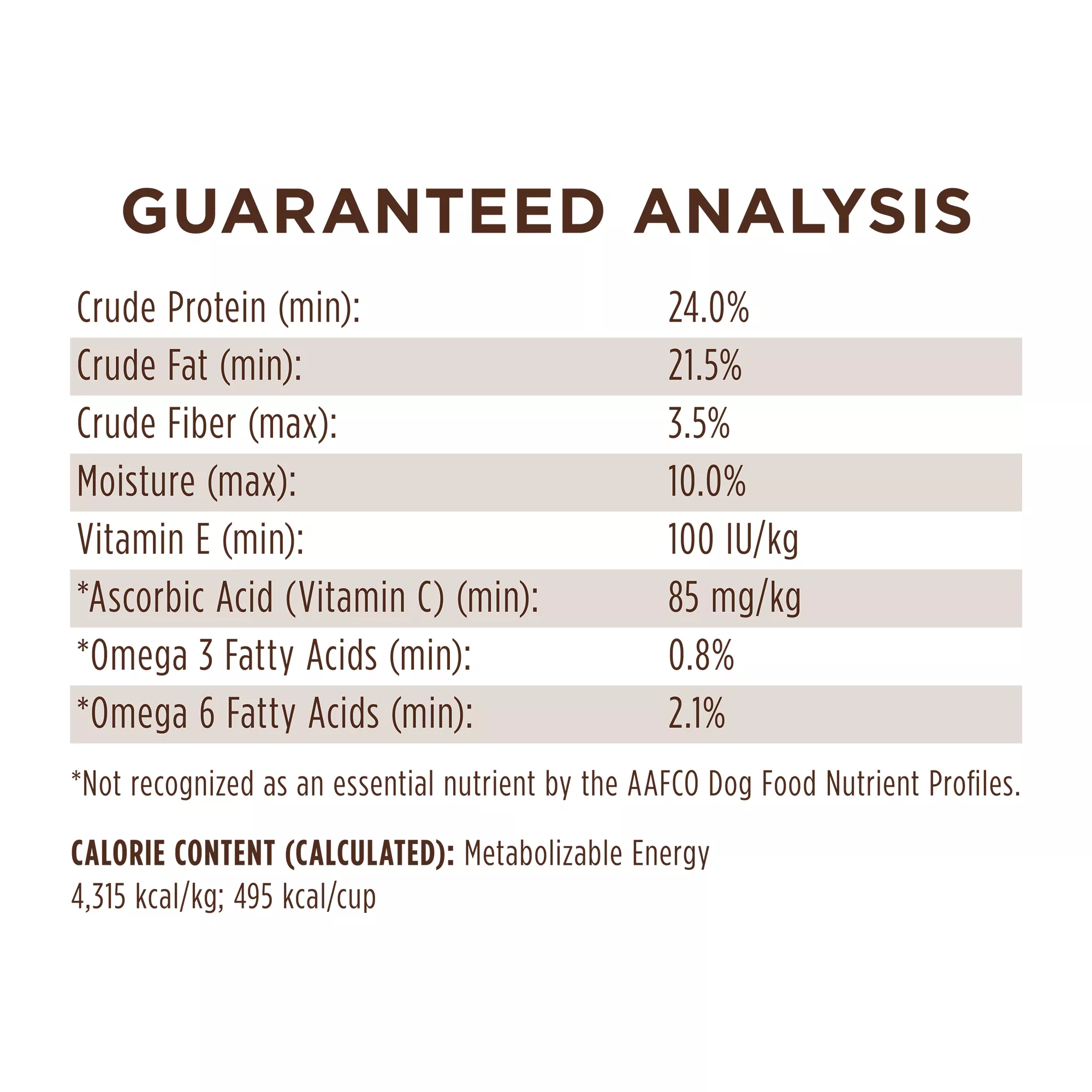 Guaranteed levels of natural Omegas and antioxidants for healthy skin & coat, and immune health???The only limited ingredient diet kibble with the pure, real nutrition of raw on every piece