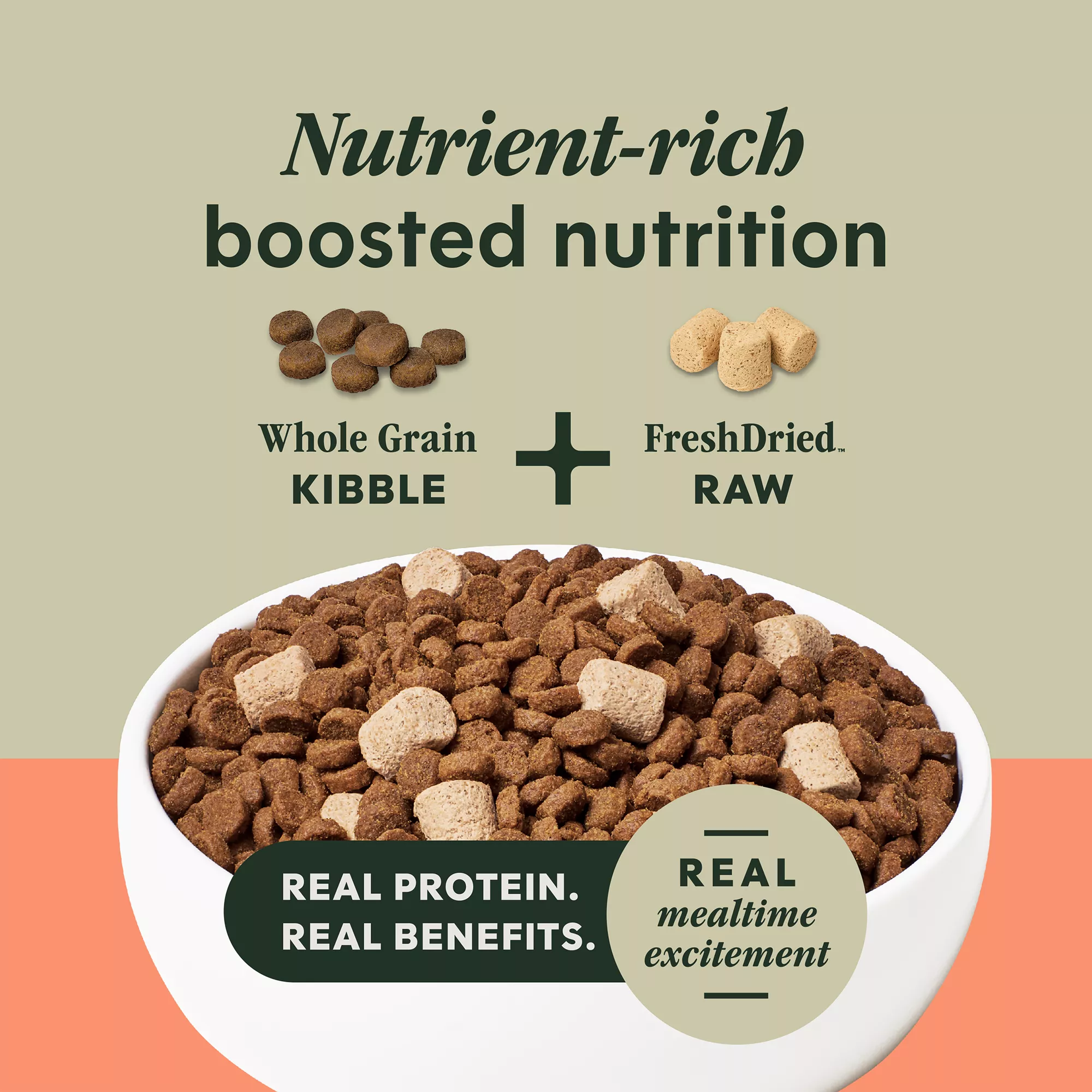 Key Benefits: Boosted Nutrition – Protein packed, whole grain kibble + Freeze-Dried Raw