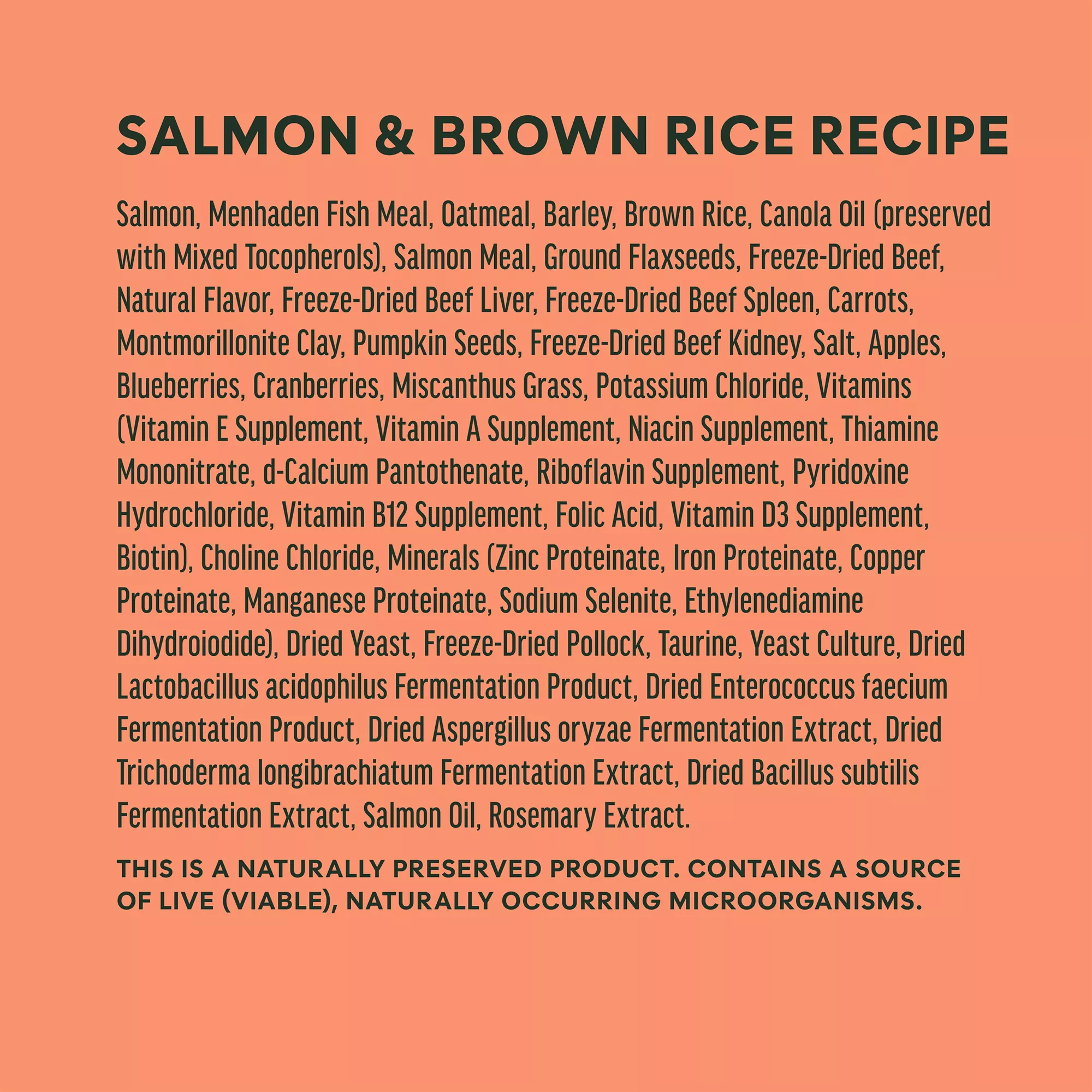 Instinct Raw Boost Whole Grain Salmon & Brown Rice Dry Dog Food, 19 lb. Bag – Protein packed, nutrient-rich food with bites of freeze-dried raw meat, Instinct Raw Boost Whole Grain Real Salmon & Brown Rice Recipe is a better way to feed kibble. Unlock your dog’s potential to thrive and put more of the pure, real nutrition of raw into every bowl. Available Varieties: . Complete and Balanced Statement: Instinct Raw Boost Whole Grain Real Salmon & Brown Rice Recipe is formulated to meet the nutritional levels established by the AAFCO Dog Food Nutrient Profiles for all life stages except for growth of large size dogs (70 lbs or more as an adult). Warranty Statement: All Instinct products are 100% Satisfaction Guaranteed. If you or your pet are not completely satisfied with this or any Instinct product, simply return the unused portion, along with the original sales receipt, to the retailer for a complete refund or replacement. Contact Us: 1-888-519-7387.