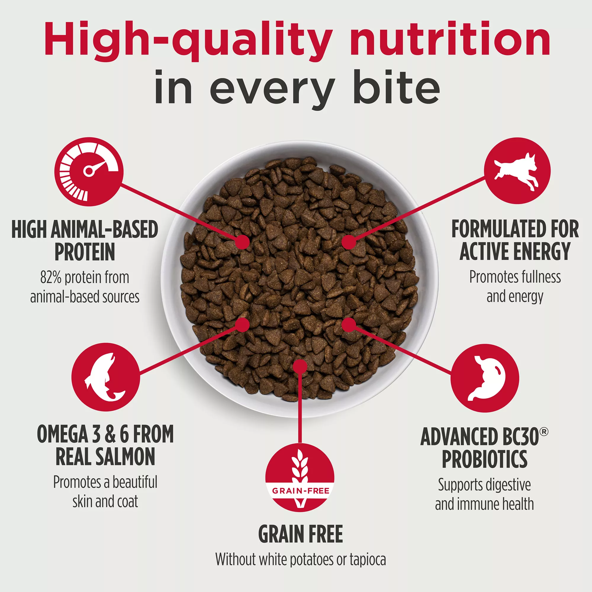 82% of protein comes from animal sources to support lean muscles and healthy heart.