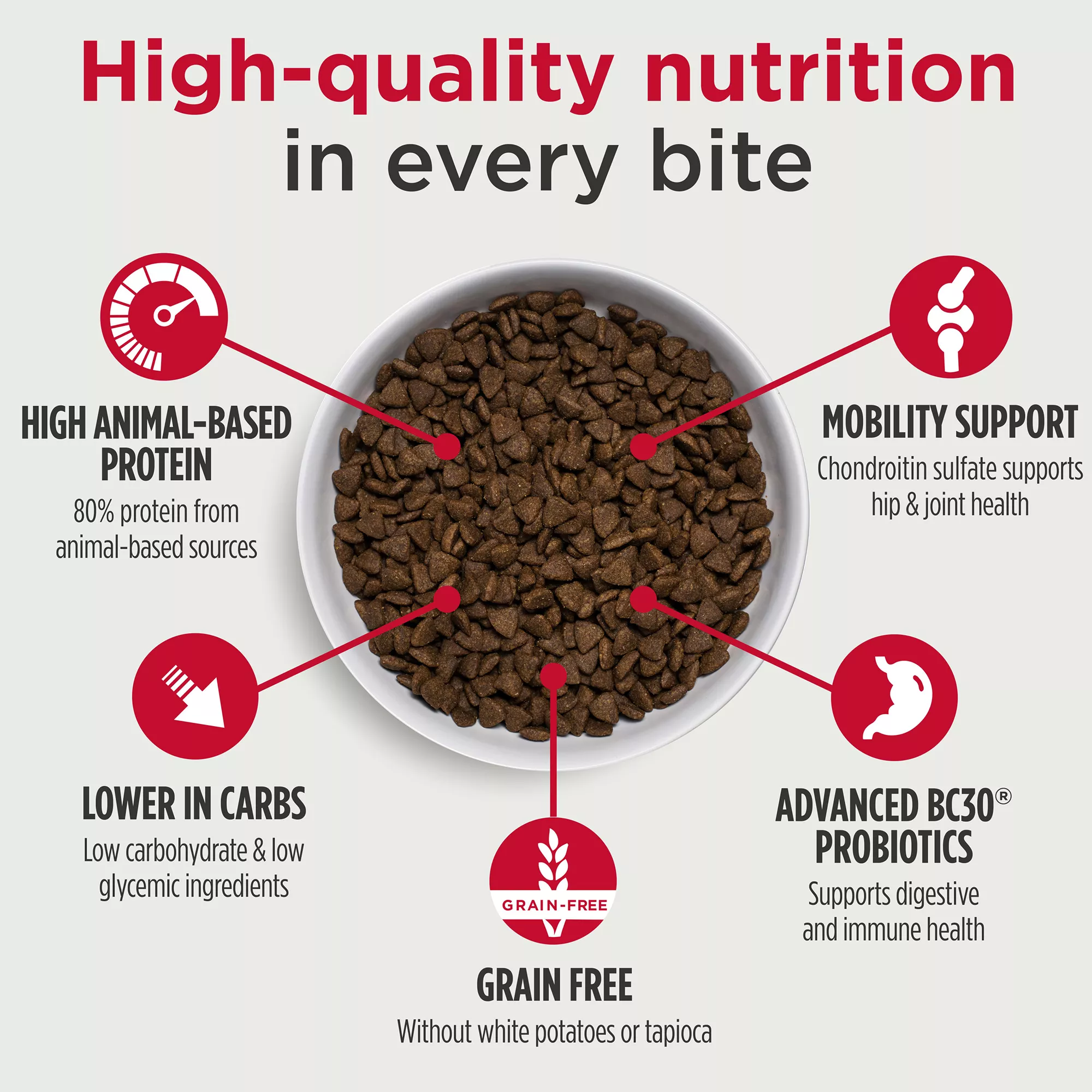 With all the benefits of Nulo’s high animal meat, grain-free formula, the senior formula also includes glucosamine and chondroitin to support hip and joint health