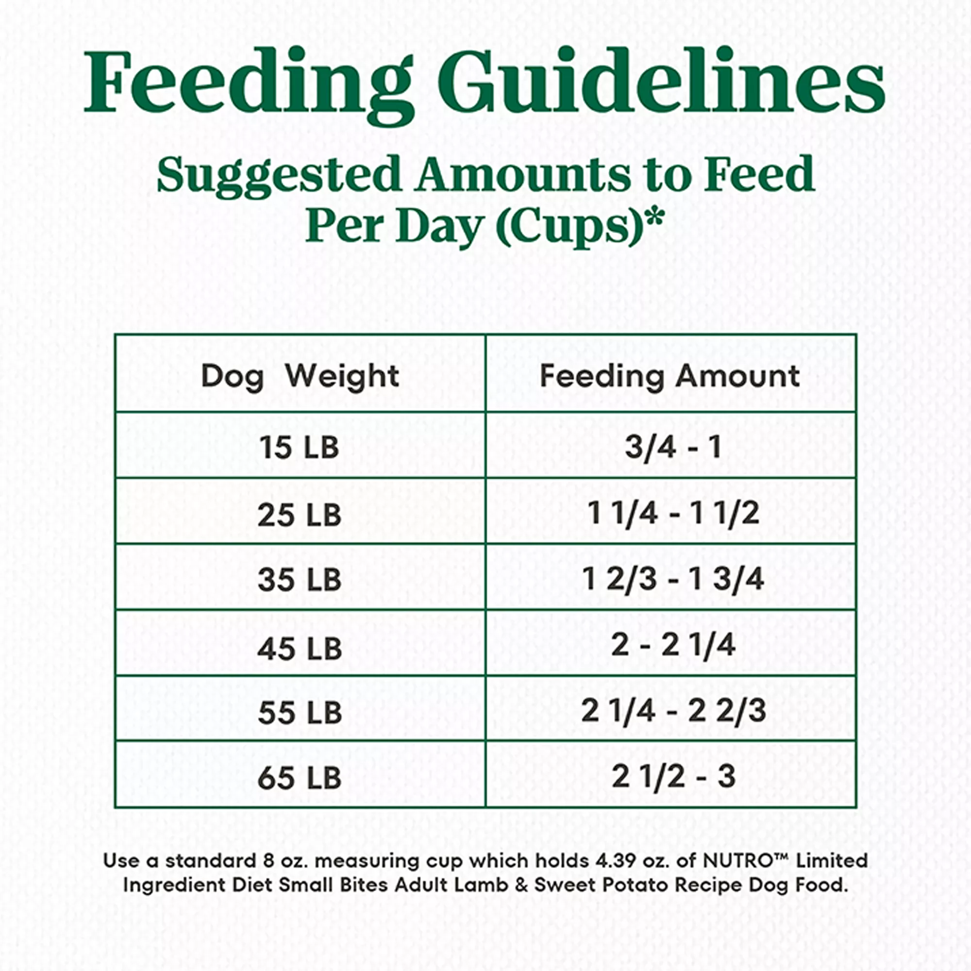 Lamb is the #1 Ingredient: Nutro Limited Ingredient Diet Small Bites Adult Dry Dog Food, Lamb & Sweet Potato Recipe is always made with 10 key ingredients or less and has lamb as the #1 ingredient, giving your dog a flavor they will love.
