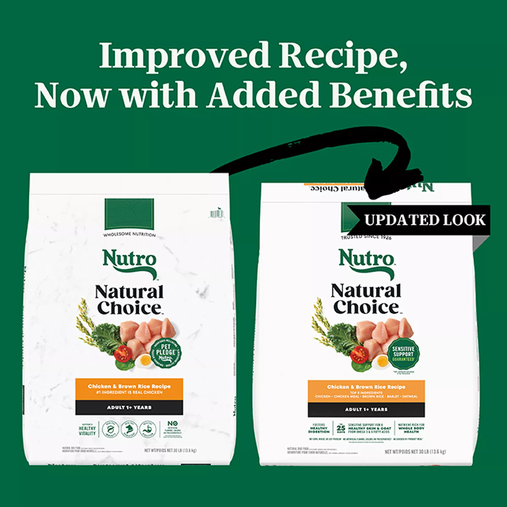 Contains: Contains one (1) 30 lb. bag of Nutro Natural Choice Adult Dry Dog Food, Chicken & Brown Rice Recipe.