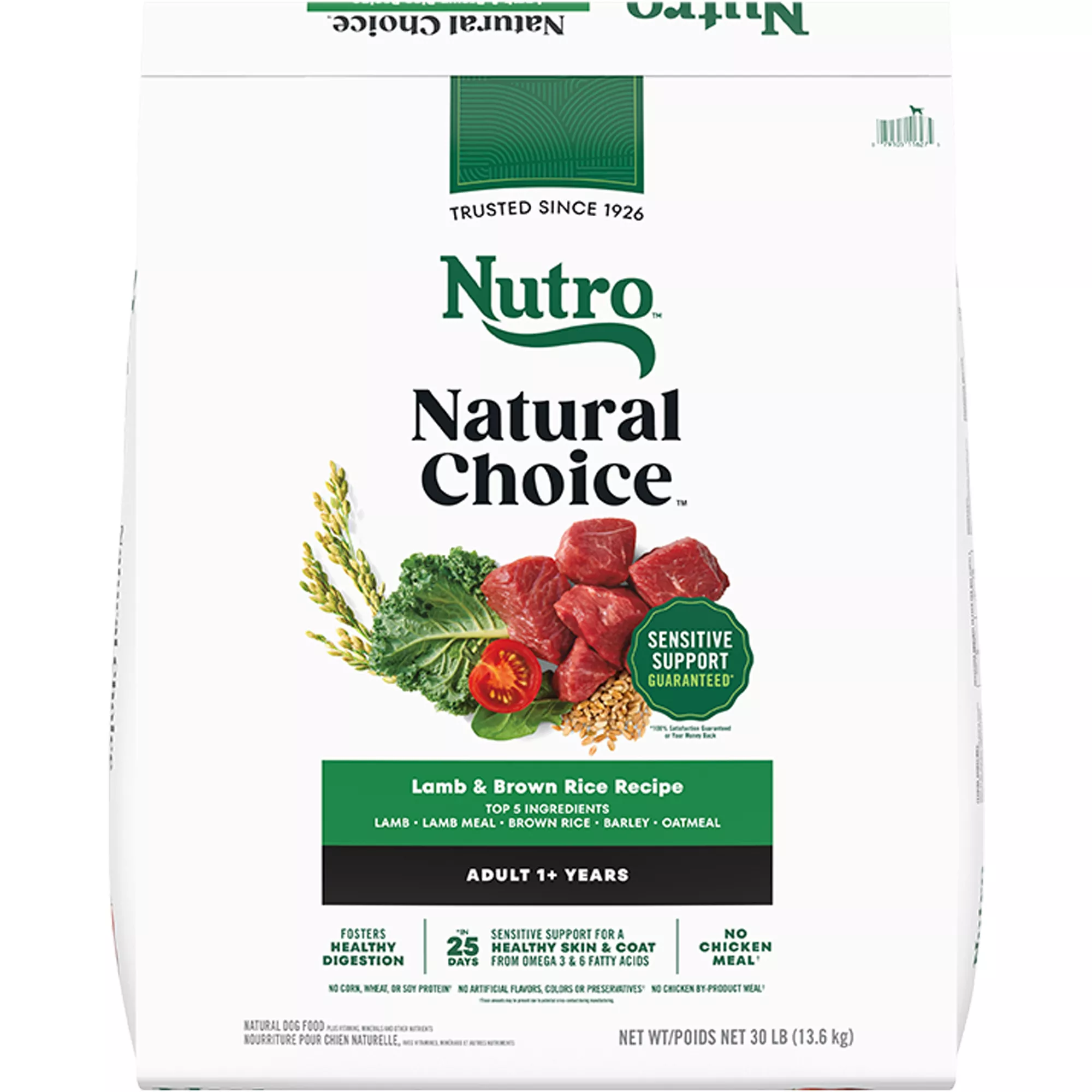 Contains: Contains one (1) 30 lb. bag of Nutro Natural Choice Adult Dry Dog Food, Lamb & Brown Rice Recipe.Species: Dog