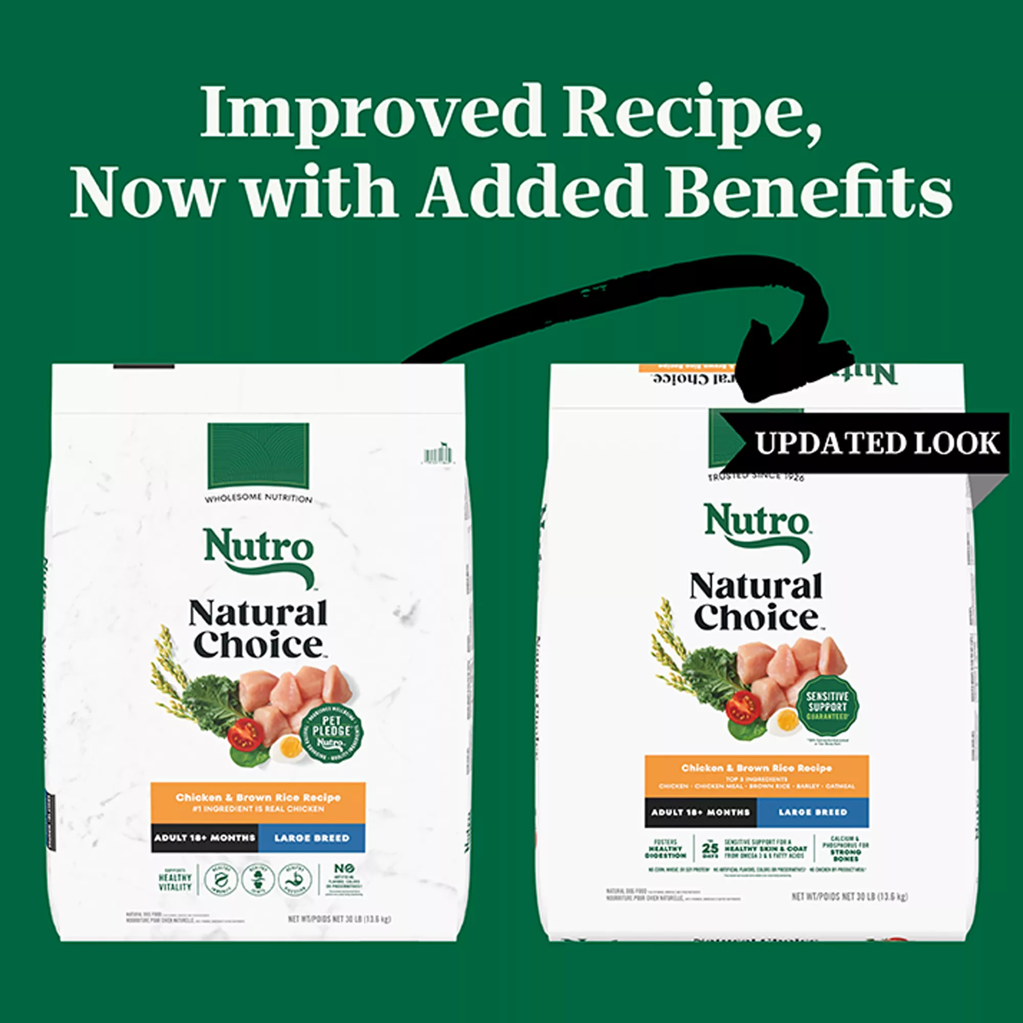Contains: Contains one (1) 30 lb. bag of Nutro Natural Choice Adult Large Breed Dog Food Dry, Chicken & Brown Rice Recipe.