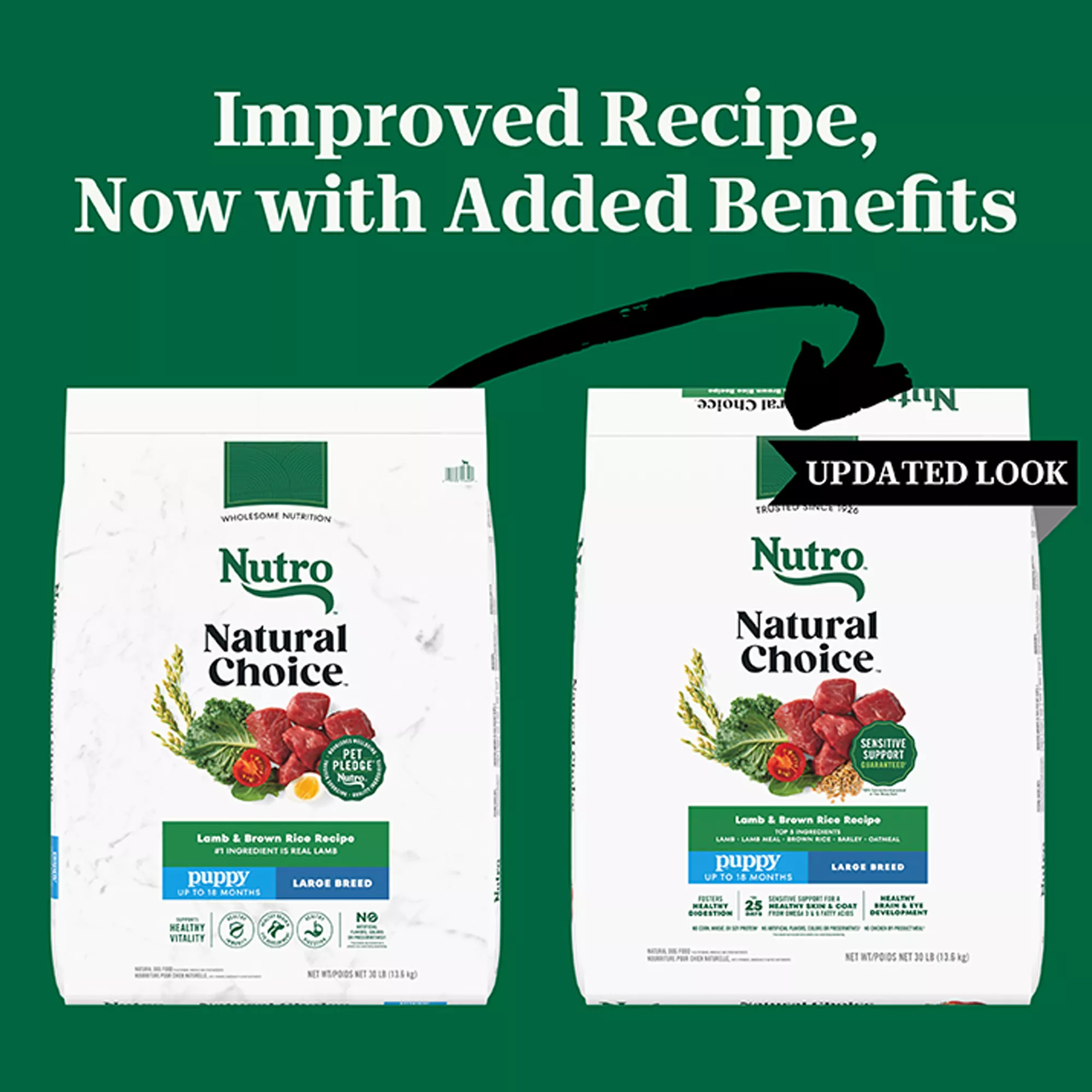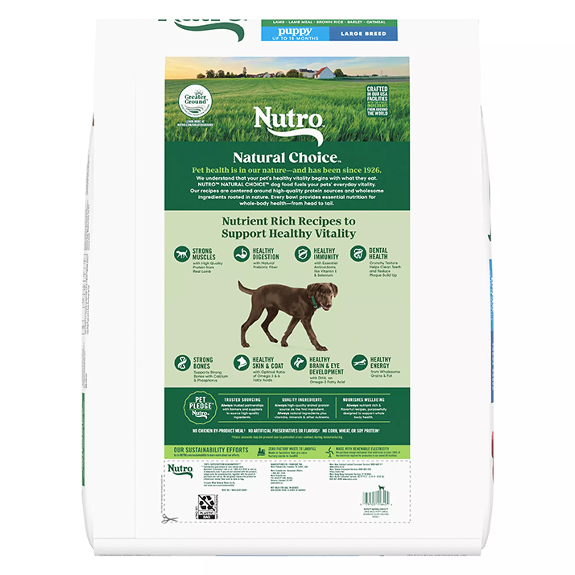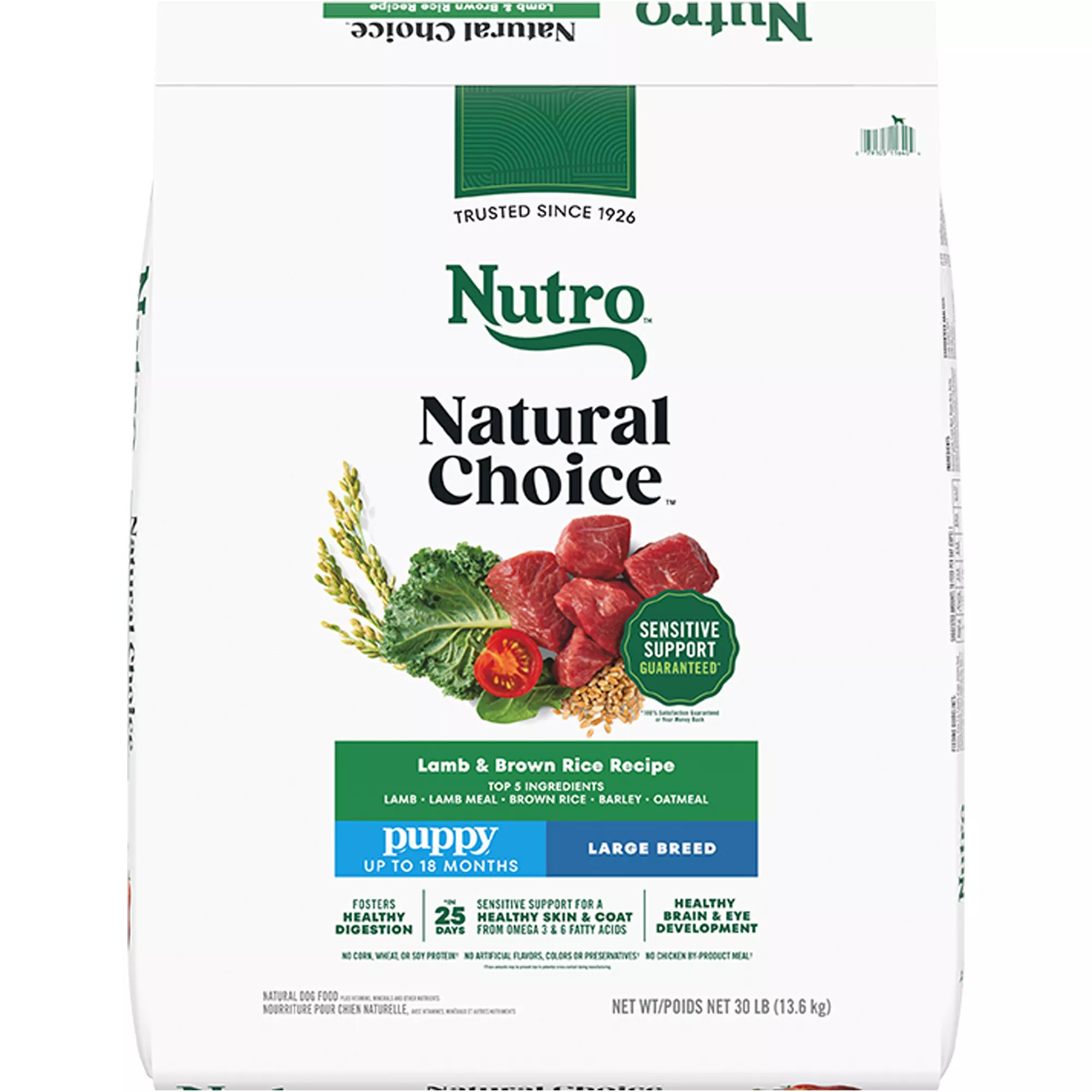 Contains: Contains one (1) 30 lb. bag of Nutro Natural Choice Large Breed Puppy Food Dry, Lamb & Brown Rice Recipe.