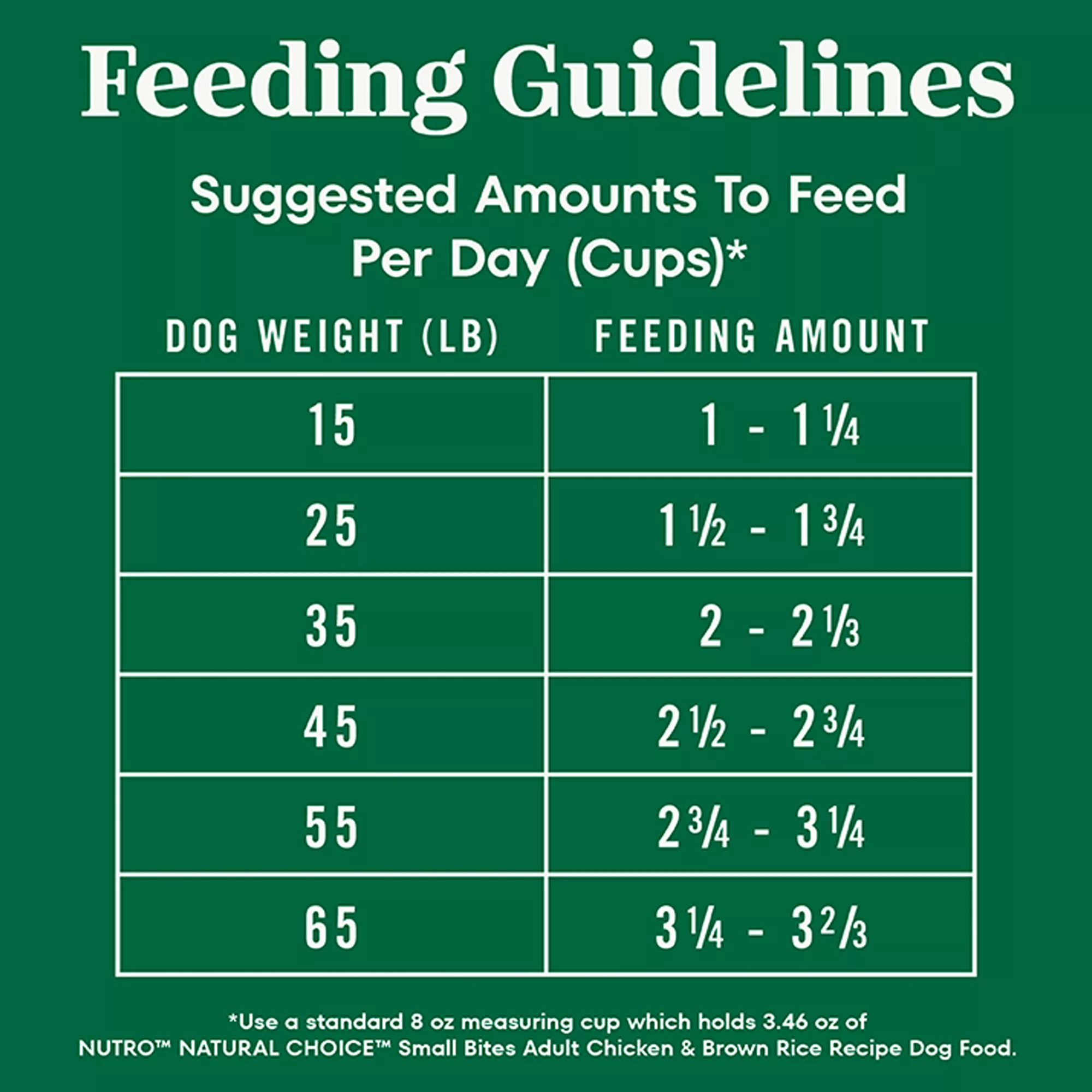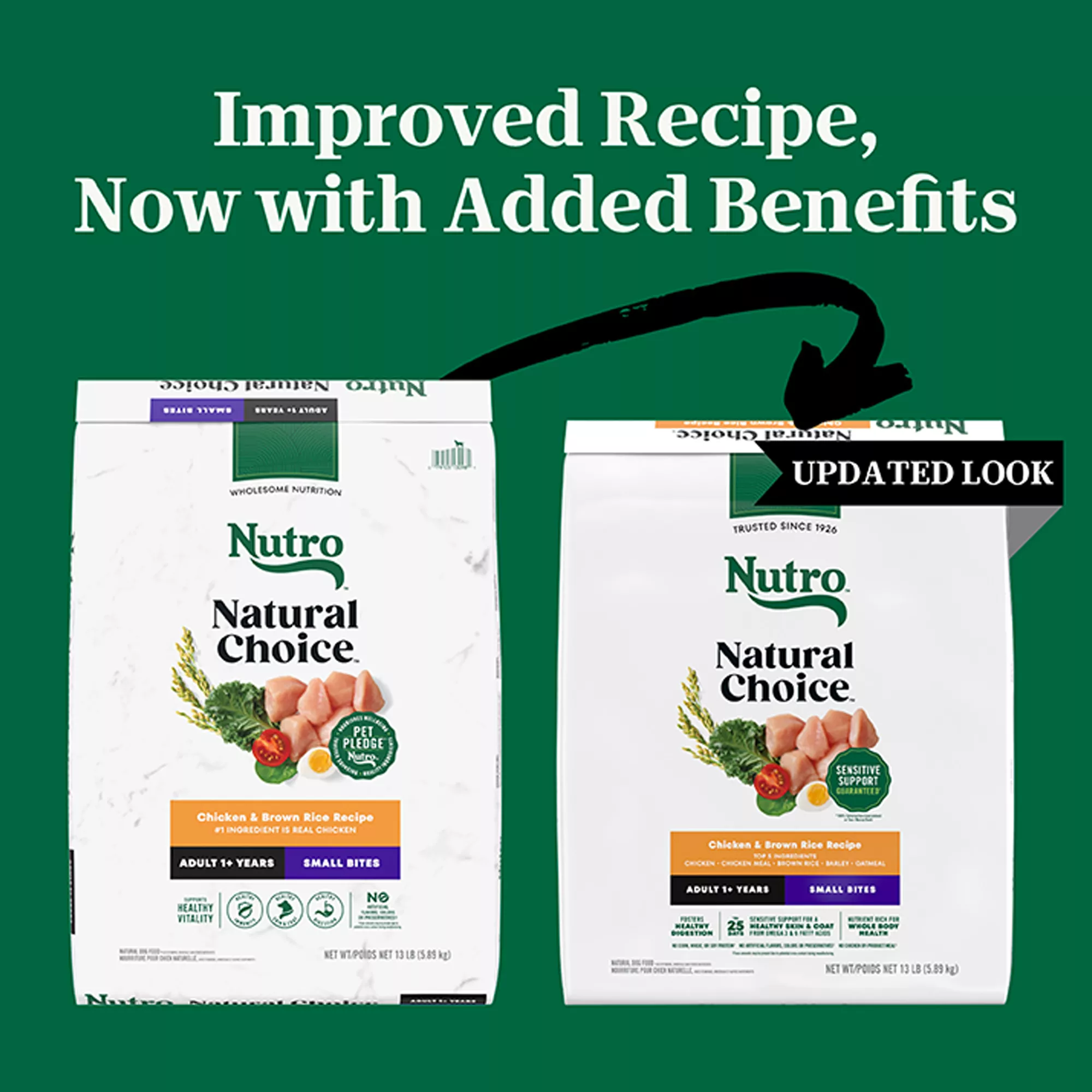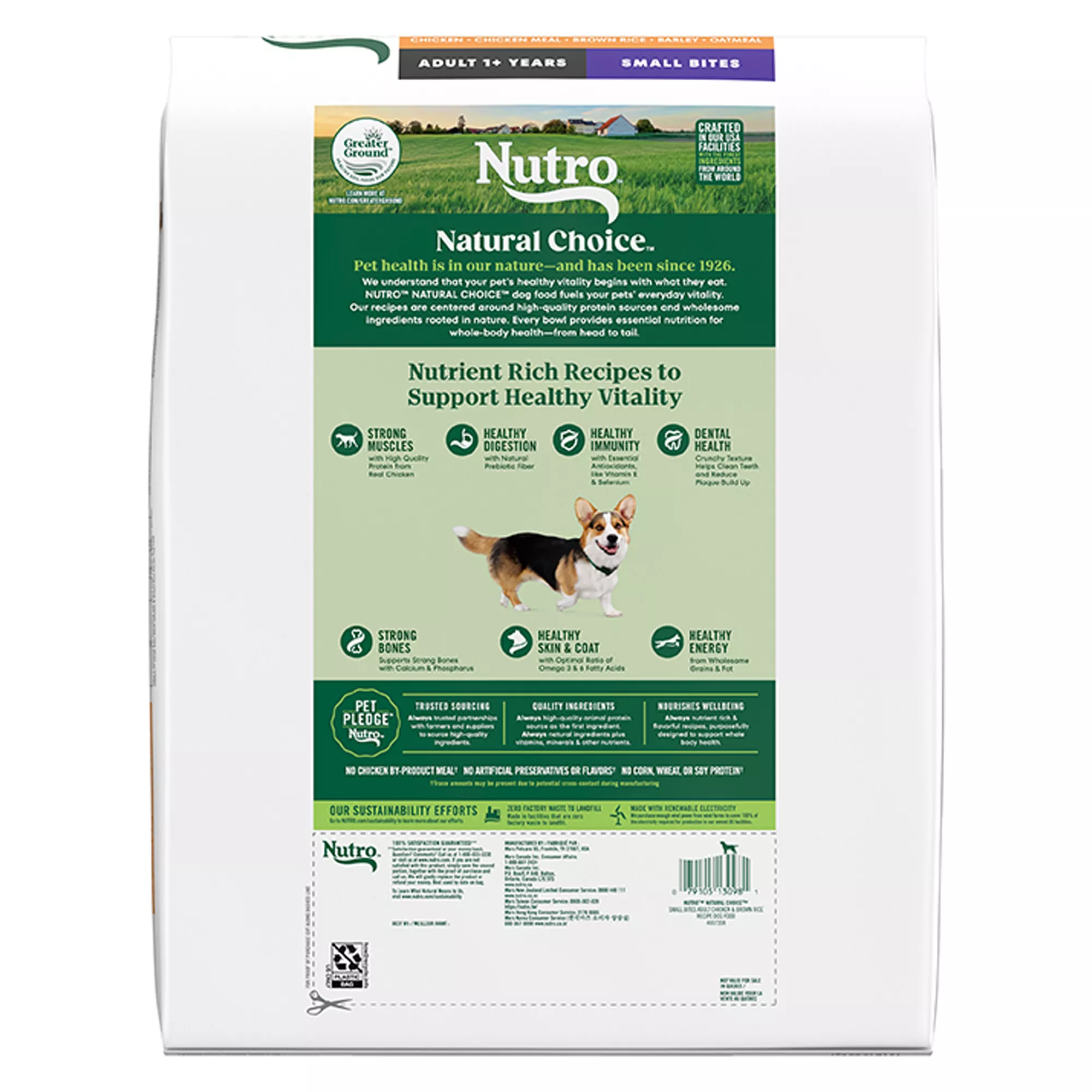 Contains: Contains one (1) 13 lb. bag of Nutro Natural Choice Adult Small Bites Dog Food, Chicken & Brown Rice Recipe.