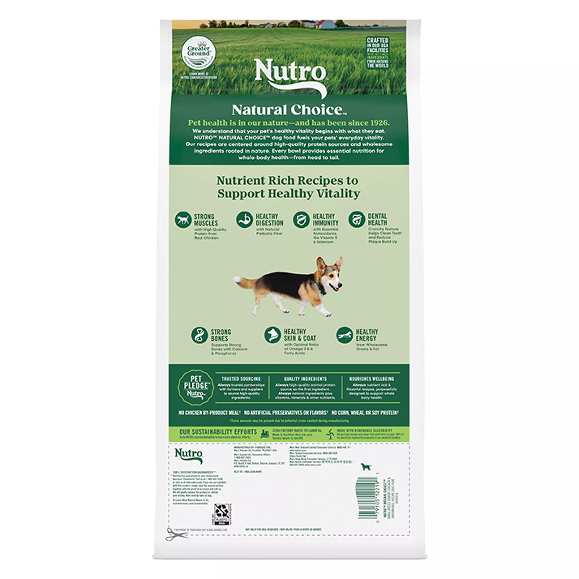 Description: Nutro believes in the power of wholesome ingredients to support the health and happiness of senior dogs. Nutro Natural Choice Small Breed Senior Dog Food Chicken & Brown Rice Recipe is a carefully batched and oven?dried dog food thoughtfully crafted to meet the specific needs of older dogs by supporting strong bones with calcium and phosphorus. This dry dog food recipe is made with real chicken as the #1 ingredient and is crafted with no corn, wheat, or soy protein. To support a sensitive stomach, this dry dog food recipe is designed with natural fiber for healthy digestion. It is crafted with Omega?3 & Omega?6 Fatty Acids to nourish sensitive skin for a soft shiny coat guaranteed in 25 days, 100% satisfaction guaranteed or your money back. Nutro Natural Choice Senior Dog Food Chicken & Brown Rice Recipe is crafted with no artificial flavors, colors, or fillers, although trace amounts may be present due to potential cross?contact during manufacturing. Choose Nutro Natural Choice Senior Dog Food Chicken & Brown Rice Recipe for a quality dry dog food that supports your senior dog’s vitality and well?being.