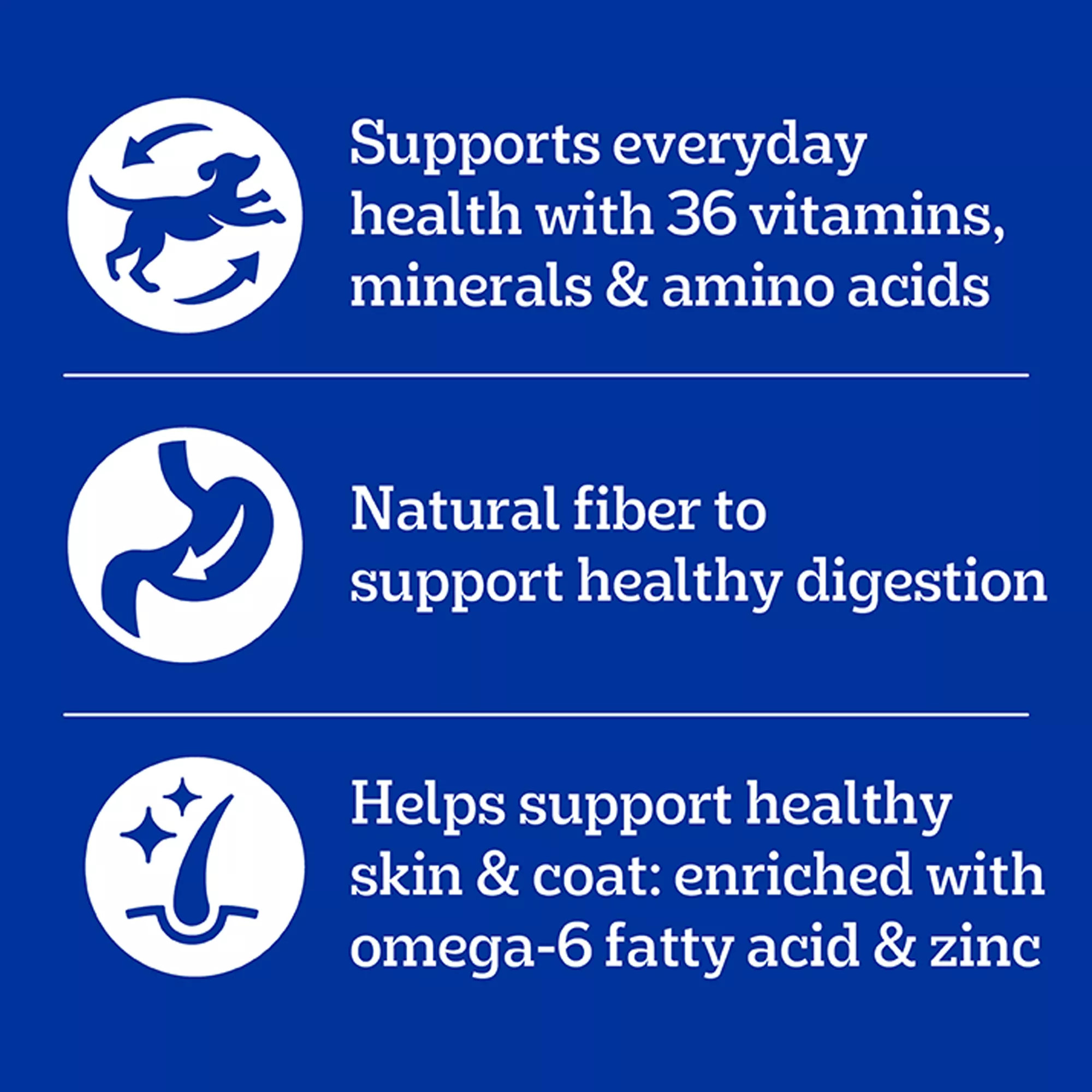 Supports Everyday Health: This dry dog food recipe is made with 36 vitamins, minerals, and amino acids to support your dog’s health and vitality.