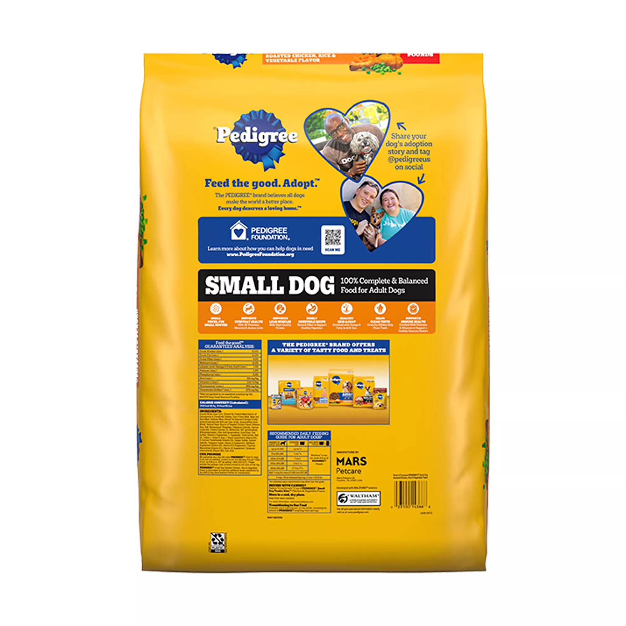 Contains one (1) 14 lb. Bag of Pedigree Complete Nutrition Adult Small Dog Dry Dog Food, Roasted Chicken and Vegetable Flavor.