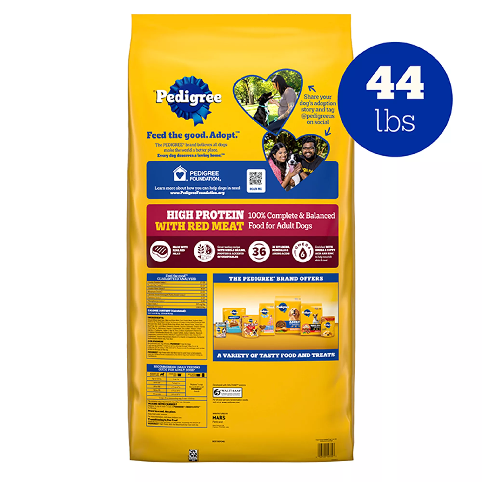 Contains one (1) 44 lb. Bag of Pedigree High Protein Adult Dry Dog Food, Beef and Lamb Flavor.