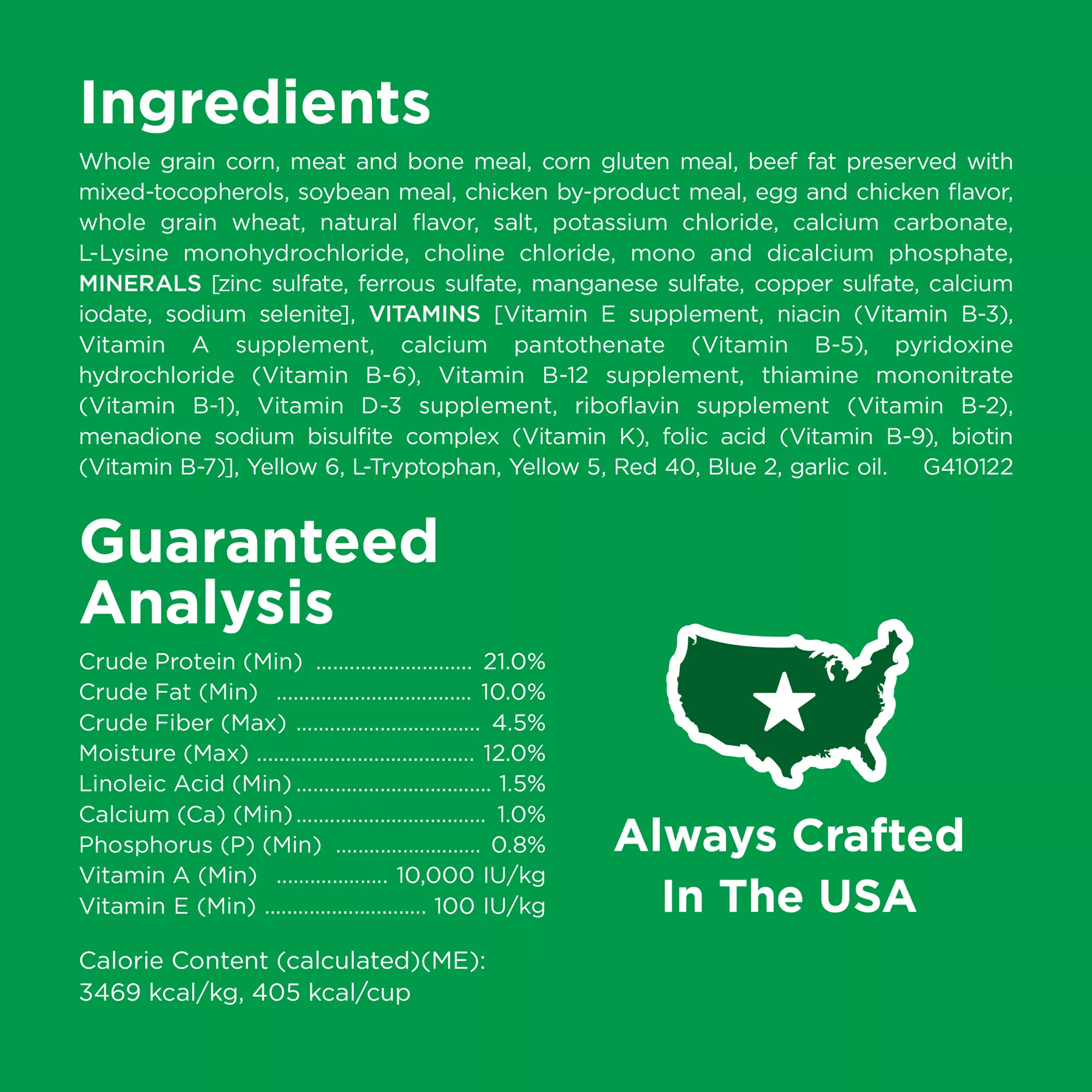 Show your adult dog, whatever his breed, how much he means to you by making Purina Dog Chow Complete with Real Chicken adult dry dog food his daily staple food. Made with real chicken, it’s formulated to provide your dog with the essential nutrition to help support a healthy, active life. With a hearty blend of nutritious ingredients, this healthy dog food supports his health and helps keep him as happy as he makes you every day you’re together. Ideal for his daily feeding routine, this healthy recipe has 100 percent of the essential nutrients to help support a healthy, active adult dog’s life and keep him up and running right by your side. If you think he’d like a little variety in his diet, but you think he might be a little picky about trying other kinds of dry food, try Purina Dog Chow Tender and Crunchy adult dry dog food, which is crafted with real meat for another taste he is sure to love.