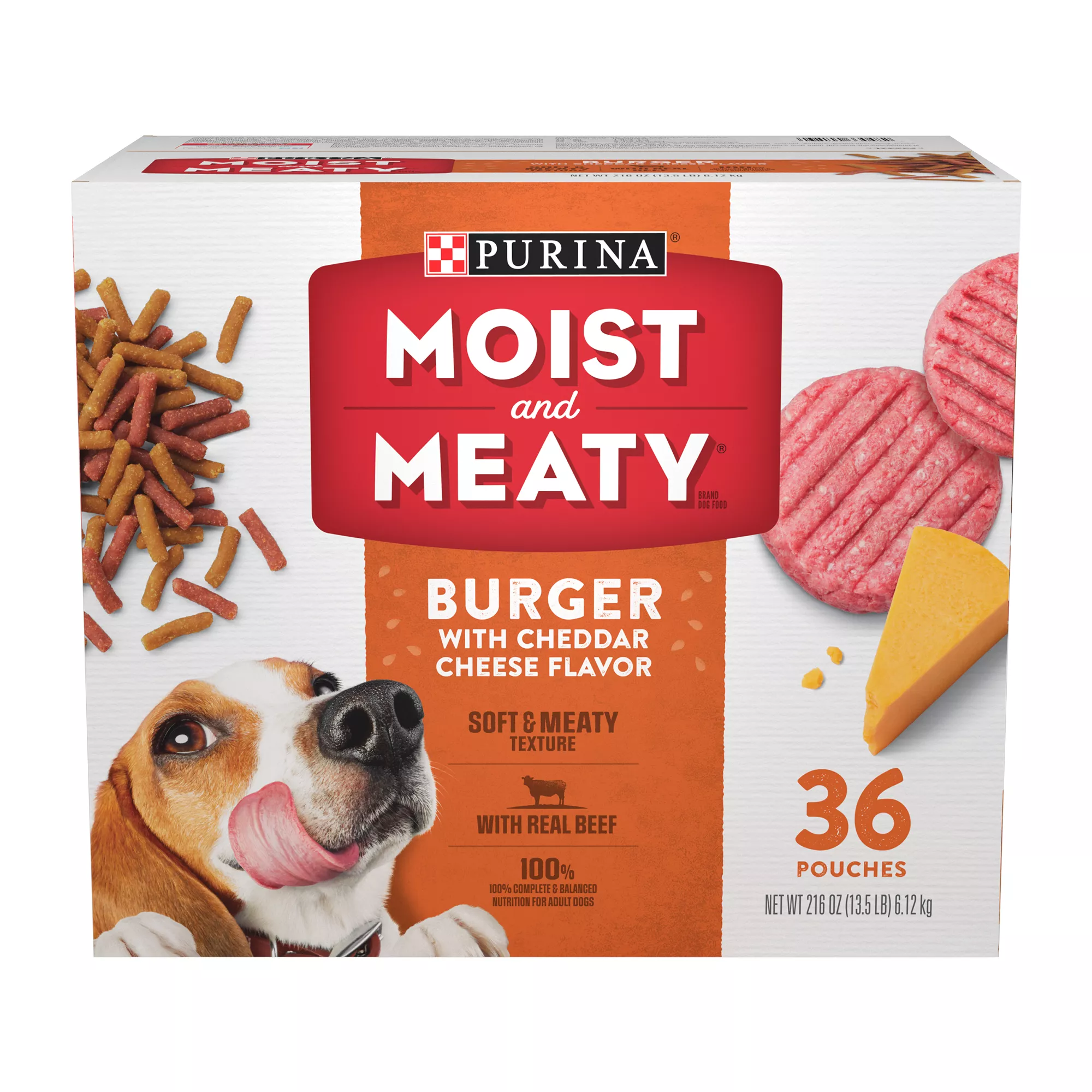 Purina Moist and Meaty dog food made with real beef