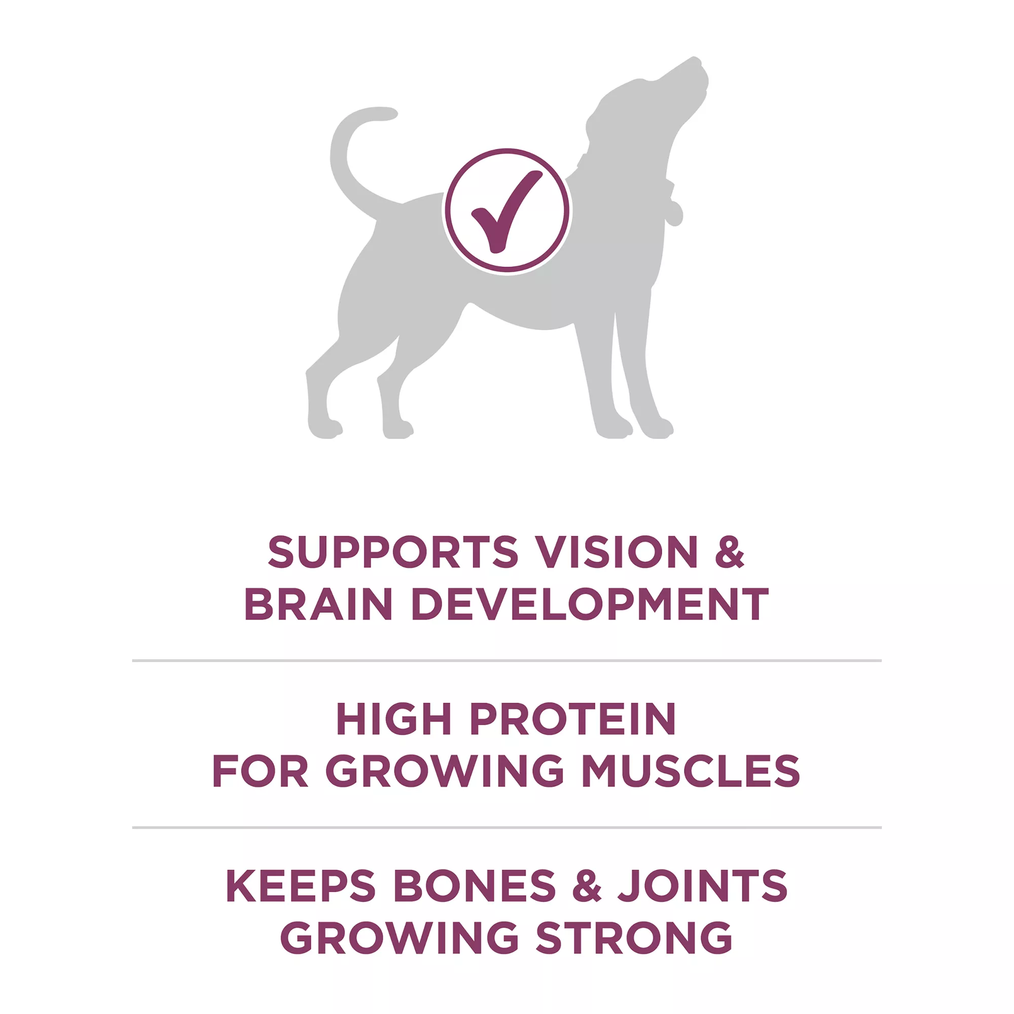 Puppy dry dog food crafted in Purina-owned facilities provides 100% nutrition for puppies with 0% fillers, so every ingredient has a purpose