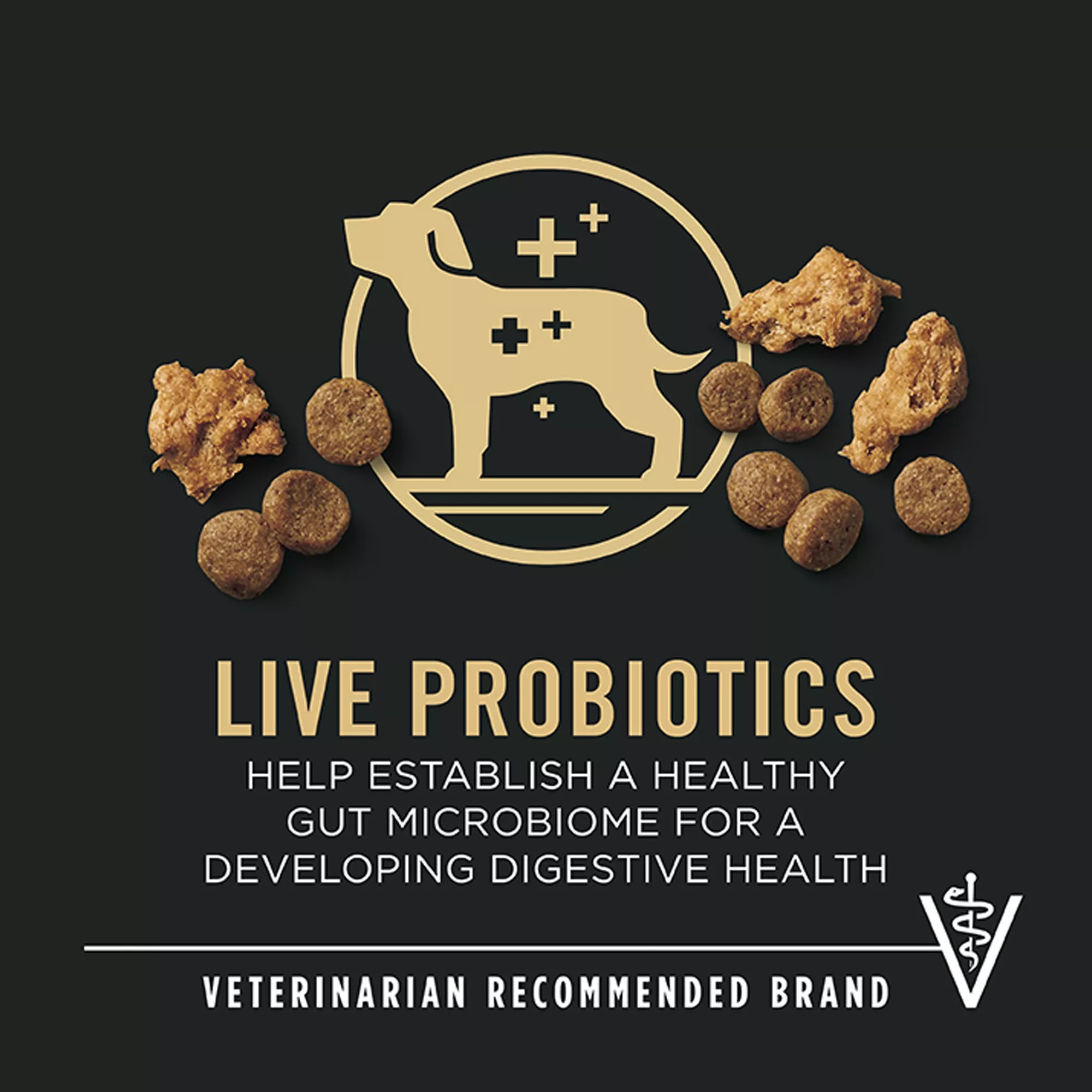 Description: Give your precious puppy wholesome ingredients and 100 percent complete and balanced puppy nutrition with Purina Pro Plan Brand Dog Food Puppy Shredded Blend Chicken and Rice Formula dry puppy food. Real chicken as the first ingredient and rice, a good source of carbohydrates for energy, are part of a formula that provides your little guy with the outstanding nutrition he needs and taste he craves. The highly digestible puppy food formula allows for optimal nutrition delivery contains no artificial colors or flavors to meet your high standards. Plus, the tempting pieces of hard kibble and tender shreds in this chicken and rice dog food are sized appropriately for his mouth and teeth. DHA from omega?rich fish oil nourishes brain and vision development, and the antioxidant?rich formula supports his developing immune system. We fortify this puppy food with guaranteed live probiotics for digestive and immune health, while phosphorus, calcium and other minerals build strong teeth and bones to help your puppy grow up big and strong. Specially designed for puppies under one year and with so much packed into every bite, this Purina Pro Plan Brand Dog Food Puppy Shredded Blend Chicken and Rice Formula dry puppy food lets you feel good about the food you serve him, and he is sure to love the flavors in every bite.