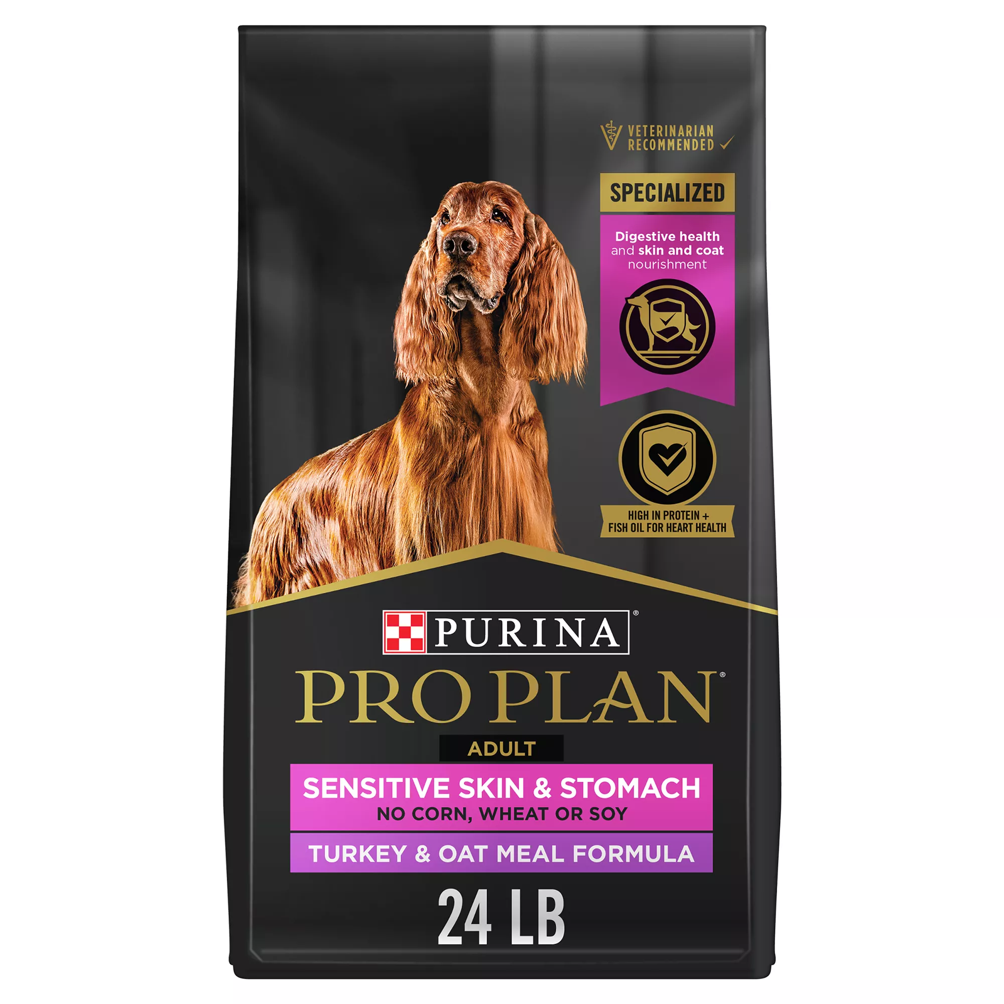 Nourish your dog’s skin and coat and help support his digestive health with Purina Pro Plan SPECIALIZED Sensitive Skin & Stomach Turkey & Oat Meal Formula adult dry dog food. Real turkey is the #1 ingredient in this wholesome, high protein dog food, and real oatmeal is easy to digest and gentle on his sensitive stomach. Sunflower oil provides a rich source of omega-6 fatty acids to support his skin and coat, and omega-3 fatty acids from fish oil and glucosamine promote mobility and j…