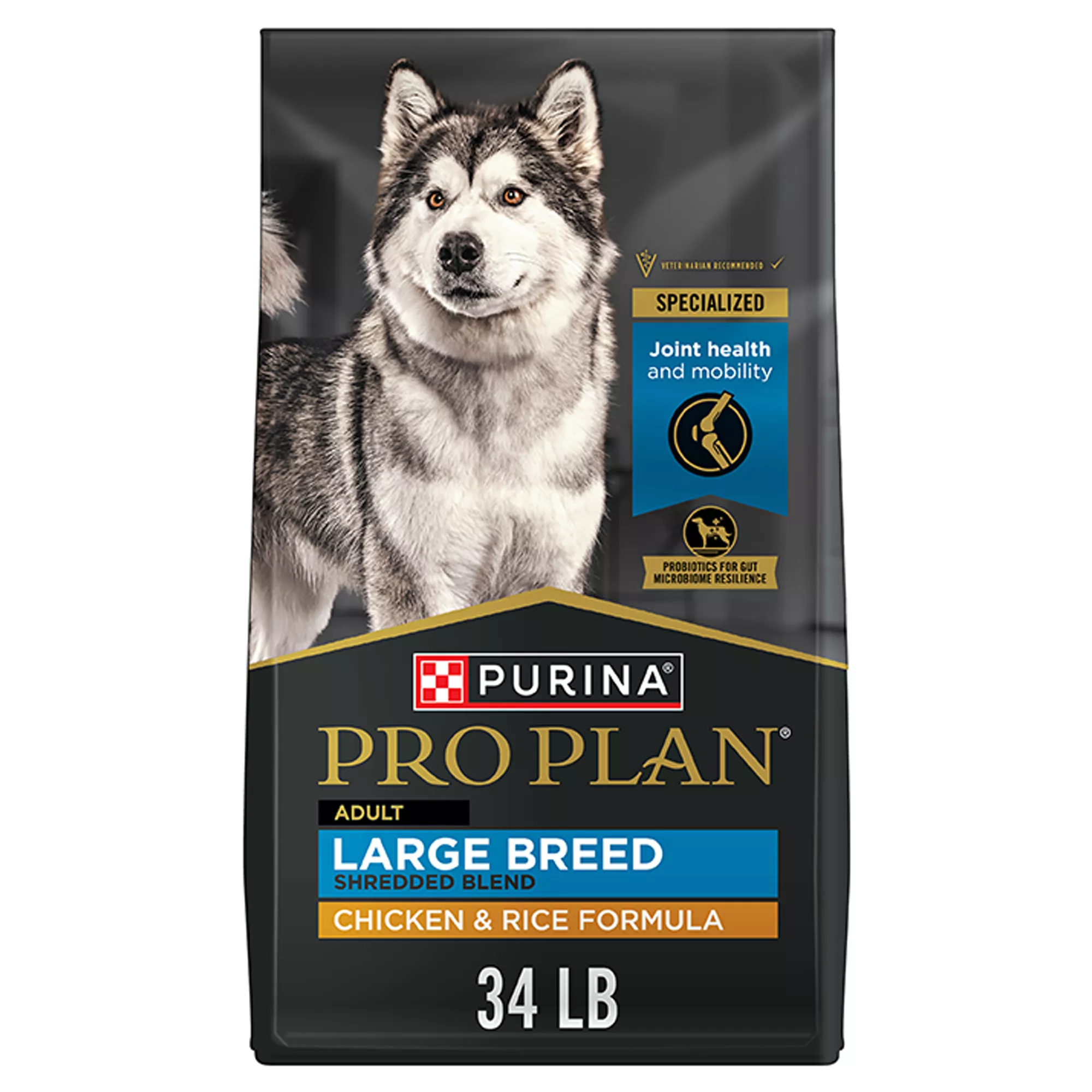 Features & Benefits: Crunchy kibble combined with tender, shredded pieces for taste and texture dogs love. High protein formula, with real chicken as the first ingredient, Fortified with guaranteed live probiotics for digestive and immune health. Used to be known as SAVOR Shredded Blend Large Breed Formula, Glucosamine and EPA, an omega?3 fatty acid, for joint health and mobility. High level of protein, combined with proper exercise, helps promote muscle conditioning, Natural prebiotic fiber nourishes specific intestinal bacteria for digestive health. 26 percent protein and 12 percent fat to maintain an ideal weight and body condition, Vitamin A and omega?6 fatty acids to nourish skin and coat. Large breed adult dog food crafted in Purina?owned U.S. facilities, Spoil your pet with Purina products. Reward yourself with points on every purchase. Download the myPurina app today.