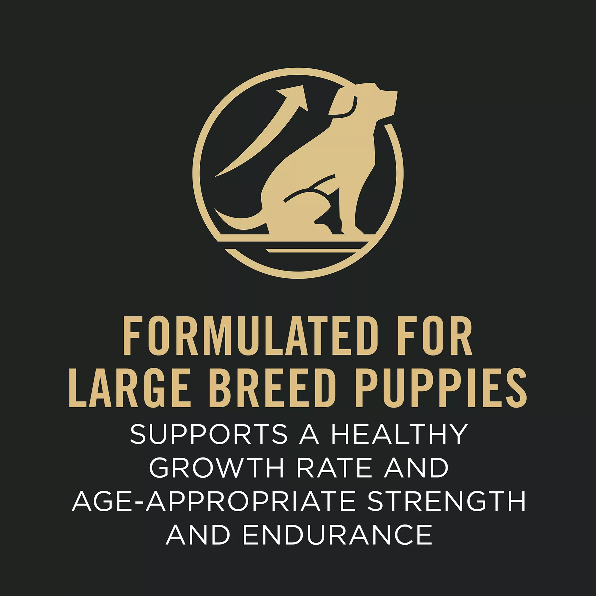 Purina large breed puppy food supports a healthy growth rate and age-appropriate strength and endurance
