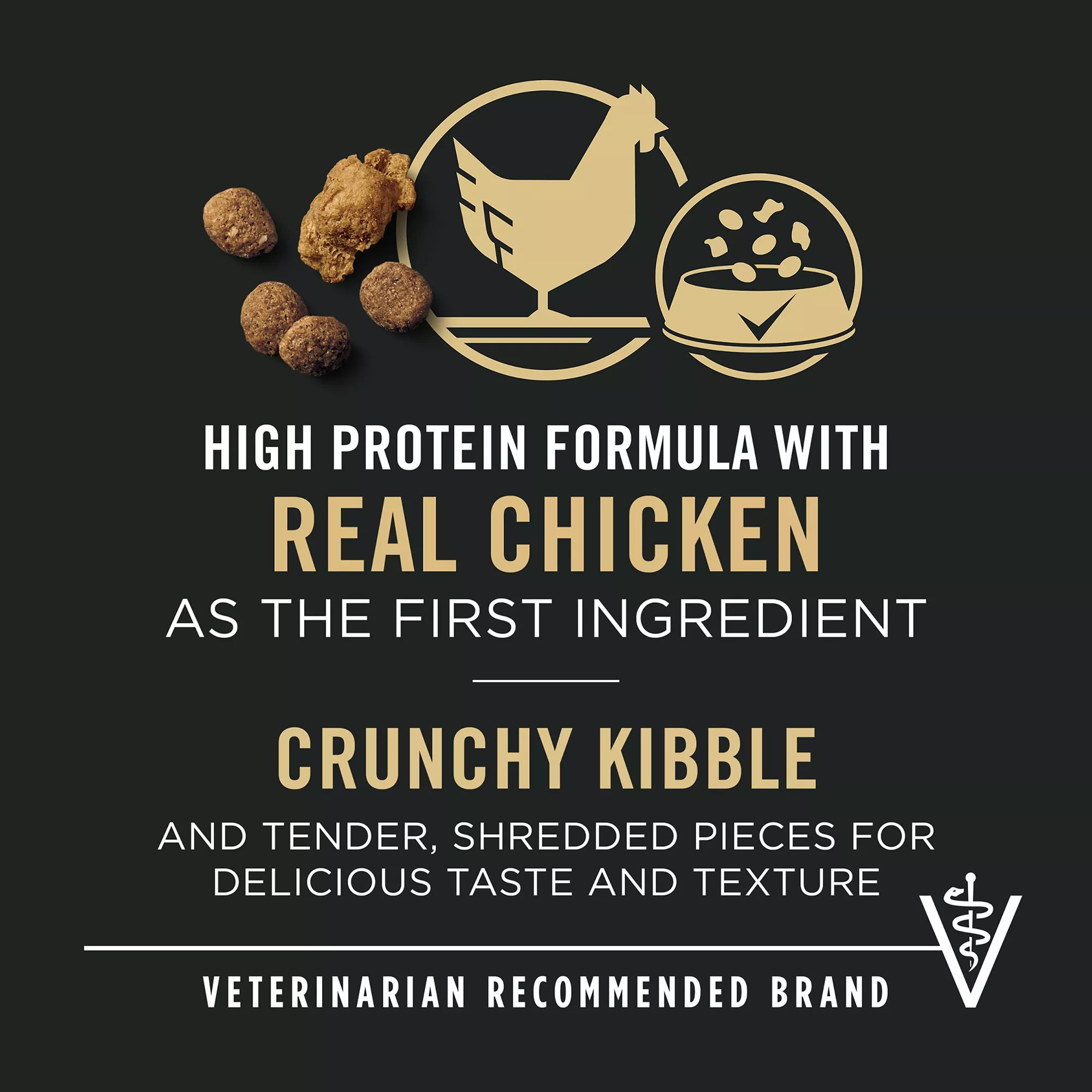 Crunchy kibble and tender, shredded pieces for delicious taste and texture