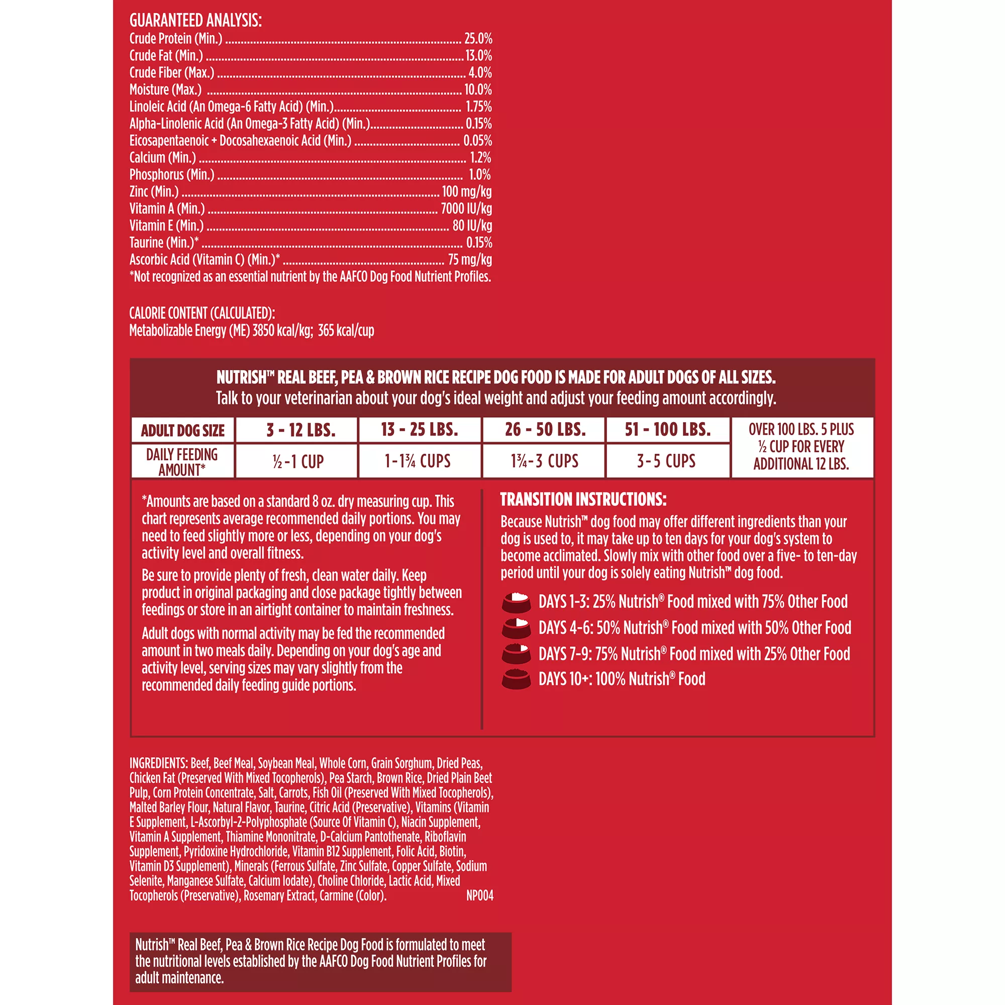 Nutritional Benefits: Farm-raised beef is the #1 ingredient, 100% Complete & Balanced Nutrition for Adult Dogs, Made with simple, natural ingredients with added vitamins & minerals, No poultry by-product meal, fillers, wheat or wheat gluten ingredients, Natural prebiotics help support healthy digestion, No artificial flavors or artificial preservatives, Super premium food for dogs, Brown Rice is an excellent source of essential vitamins and wholesome fiber, Peas are an excellent source of essential vitamins & minerals, which help support a healthy metabolism and sustained energy, Beet Pulp is a wholesome fiber source that naturally provides prebiotics, which help support healthy digestion, Chicken Fat is a rich source of natural Omega 6 and Omega 3 fatty acids, which help support healthy skin and coat
