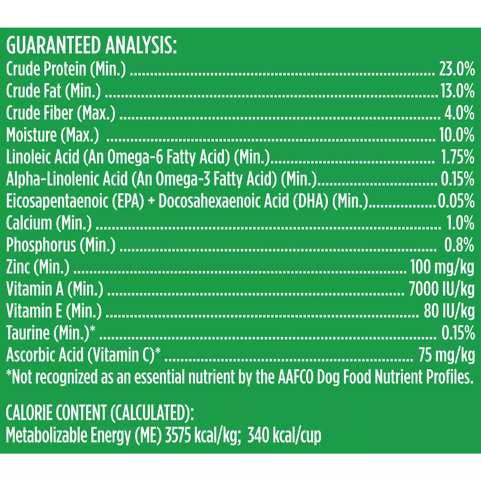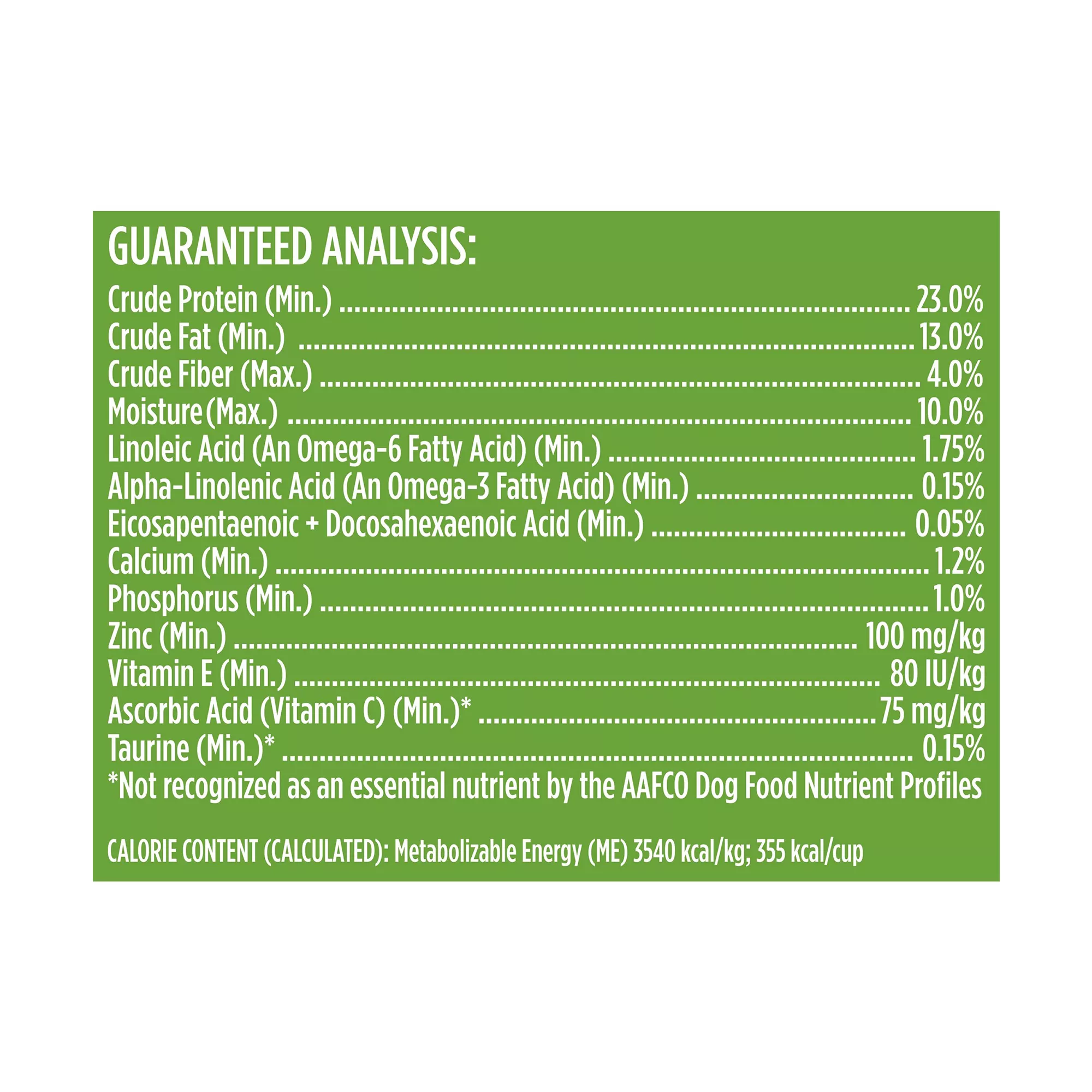 Nutritional Benefits: 100% Complete & Balanced Nutrition for Adult Dogs, Made with simple, natural ingredients with added vitamins & minerals, Natural prebiotics help support healthy digestion, No poultry by-product meal, fillers, wheat or wheat gluten ingredients, No artificial flavors or artificial preservatives, Natural food for adult dogs with added vitamins &minerals, Real chicken raised on farms is the #1 ingredient, which helps support healthy organs and lean muscle mass, Brown Rice is an excellent source of essential vitamins and wholesome fiber, Peas are an excellent source of essential vitamins & minerals, which help support healthy metabolism and sustained energy.