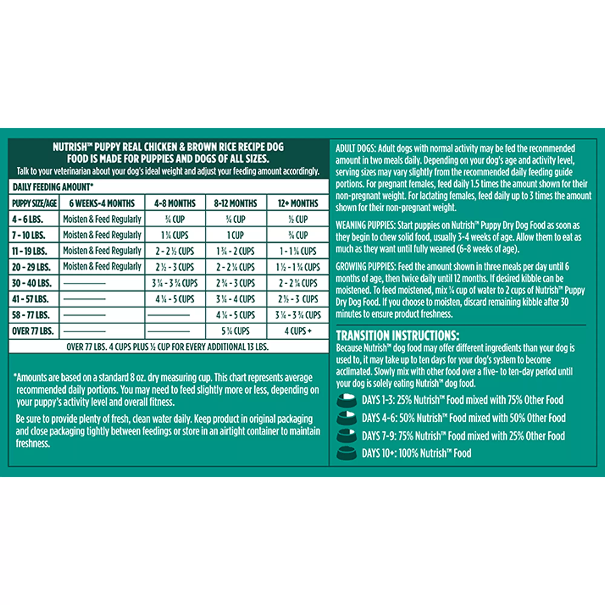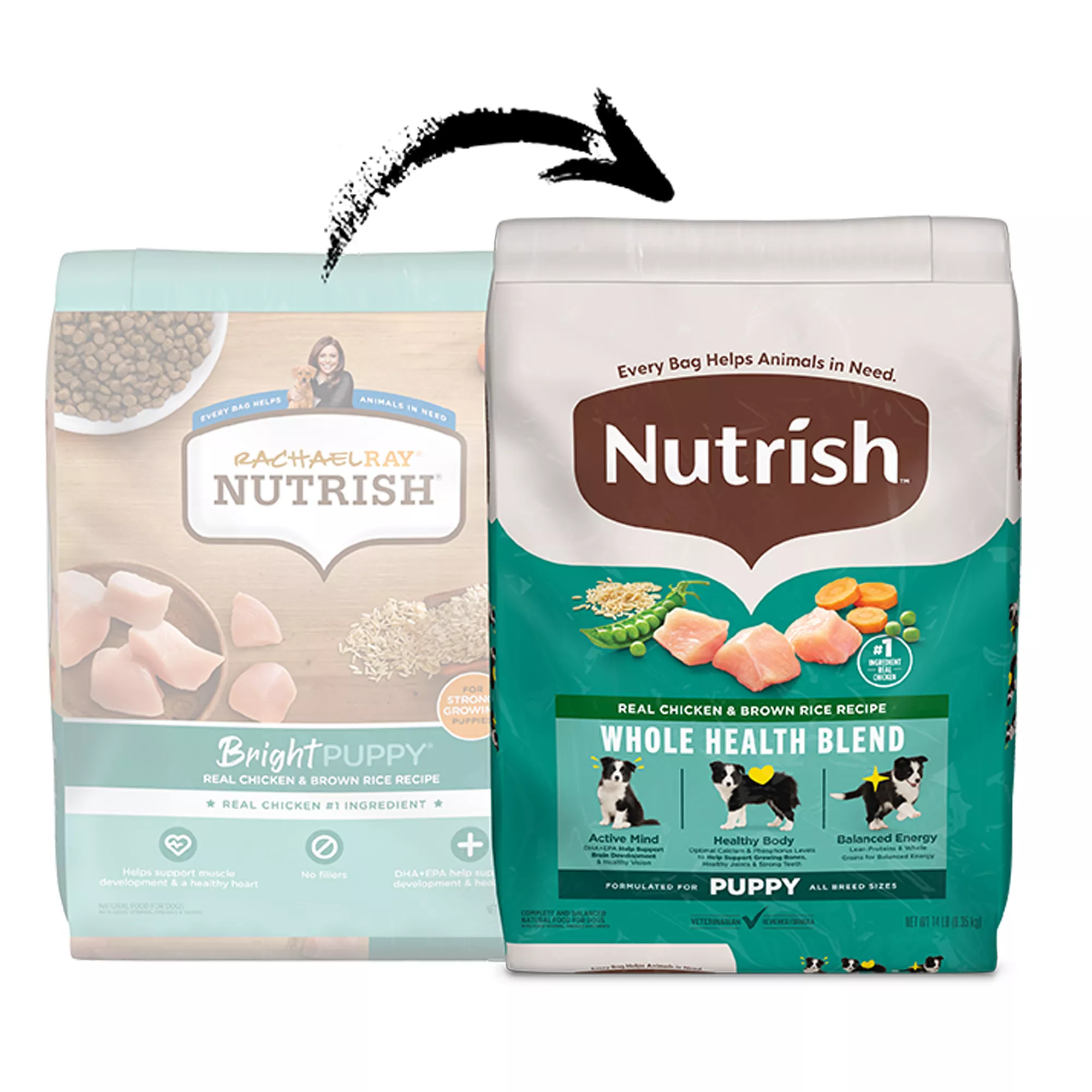 Feed your fur baby a recipe with all the nutrition your puppy needs to grow and a delicious, a puppy-approved taste! Rachael Ray Nutrish Bright Puppy Dry Dog Food Real Chicken & Brown Rice Recipe is a wholesome, chicken first dog food that both you and your pup will love. Inspired by Rachael’s kitchen, it’s crafted with carefully selected ingredients to give your puppy a strong foundation for a bright, healthy future.