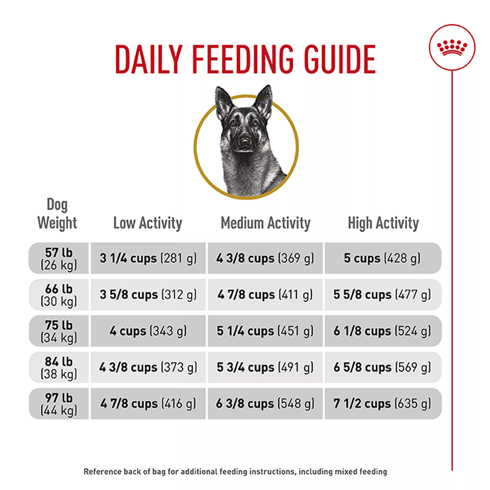 THIS BAG CONTAINS 137 CUPS OF FOOD: Refer to the packaging for daily feeding guidelines and to establish your shipping schedule!
